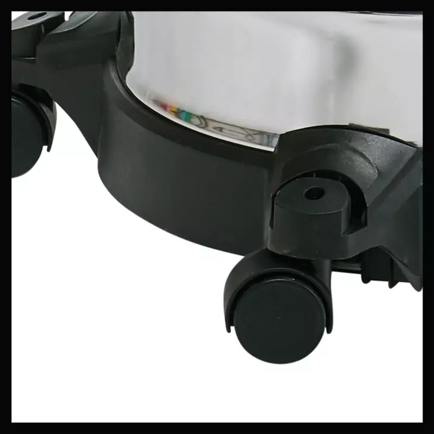 Einhell TC-VC 1820 S mitrā un sausā sūknis ir jaudīgs palīgs ar 1,250 W jaudu, kas nodrošina dziļu un rūpīgu tīrīšanu. Mitrā un sausā sūknis ir lielisks risinājums rūpīgai virsmu tīrīšanai, kas nav jutīgas pret ūdeni. Mājas darbiem, paklājiem vai fiksētām tekstilmateriāliem, flīzēm vai visiem veidiem glazētām flīzēm ar atvērtām porām, parasta virsmas tīrīšana bieži vien nav pietiekama. Mitrā un sausā sūknis var tikt izmantots arī transportlīdzekļu iekšpuses tīrīšanai, līdz pat tekstilmateriāla galiem, vai tie būtu sēdekļi un griestu apdare vai paklāji un interjera apdare. Einhell mitrā un sausā sūknis ir aprīkots ar izturīgu un rūsas izturīgu nerūsējošā tērauda tvertni ar 20 litru ietilpību. Šļūtenes sistēma ar 36 mm diametru nodrošina augstu gaisa un netīrumu plūsmu. Gaisa pūšanas savienojums ir paredzēts grūti sasniedzamu vietu tīrīšanai, piemēram, stūros vai aiz masīviem skapjiem. Lai nodrošinātu vieglu transportēšanu un elastību lietošanā, ir riteņi. Kārtībai lietošanas laikā ir praktisks piederumu turētājs un kabeļa turētājs uz korpusa. Produkts tiek piegādāts pilnā komplektā ar 1,50 m plastmasas sūkšanas šļūteni ar trīsdaļīgu pagarināšanas cauruli, grīdas uzgali paklājiem un gludām grīdām, kā arī šauru uzgali, plus putu filtrs, zils filtra maisiņš un papīra netīrumu maisiņš, lai nekas netraucētu uzsākt darbu uzreiz.