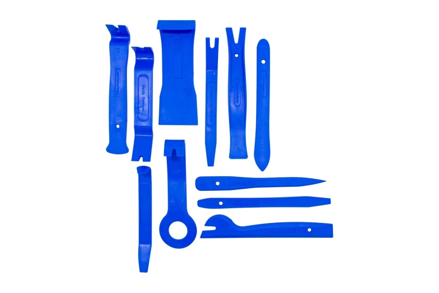 Kvalitāte. Katrs instruments ir izgatavots no izturīga plastika, kas nodrošina nepieciešamo stingrību demontāžas uzdevumu veikšanai, nesabojājot virsmas. Tas ļauj droši un precīzi noņemt apdari, minimizējot skrāpējumu vai čipu risku uz interjera elementiem.