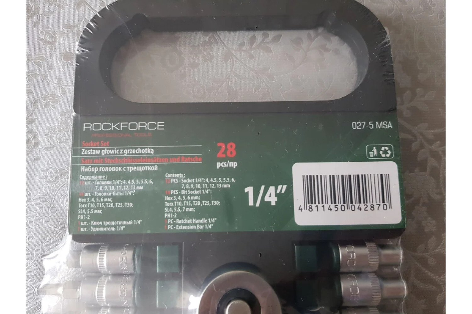 Sešstūra uzgriežņu un bitu komplekts ar ratchet mehānismu plastmasas turētājā, 27 priekšmeti 1/4'' (4-14mm, 6-gran.) no zīmola RockFORCE, modelis RF-027-5MSA. Izgatavots no hromovanādija tērauda, tas ir izturīgs un uzticams instruments, kas ideāli piemērots remontam auto servisos, garāžās, dārzos un mājās. Šis kompaktais komplekts ir lieliska dāvana draugam, vīram, brālim, svainim vai kolēģim! Tas ir noderīgs auto entuziastiem nelielu remontu veikšanai, piemēram, lampiņu nomaiņai, paneļa atskrūvēšanai, akumulatora noņemšanai, skavas utt., kā arī mājās - mēbeļu montāžai, sanitārtehnikas uzstādīšanai, dārza un sadzīves tehnikas remontam un daudz kam citam.