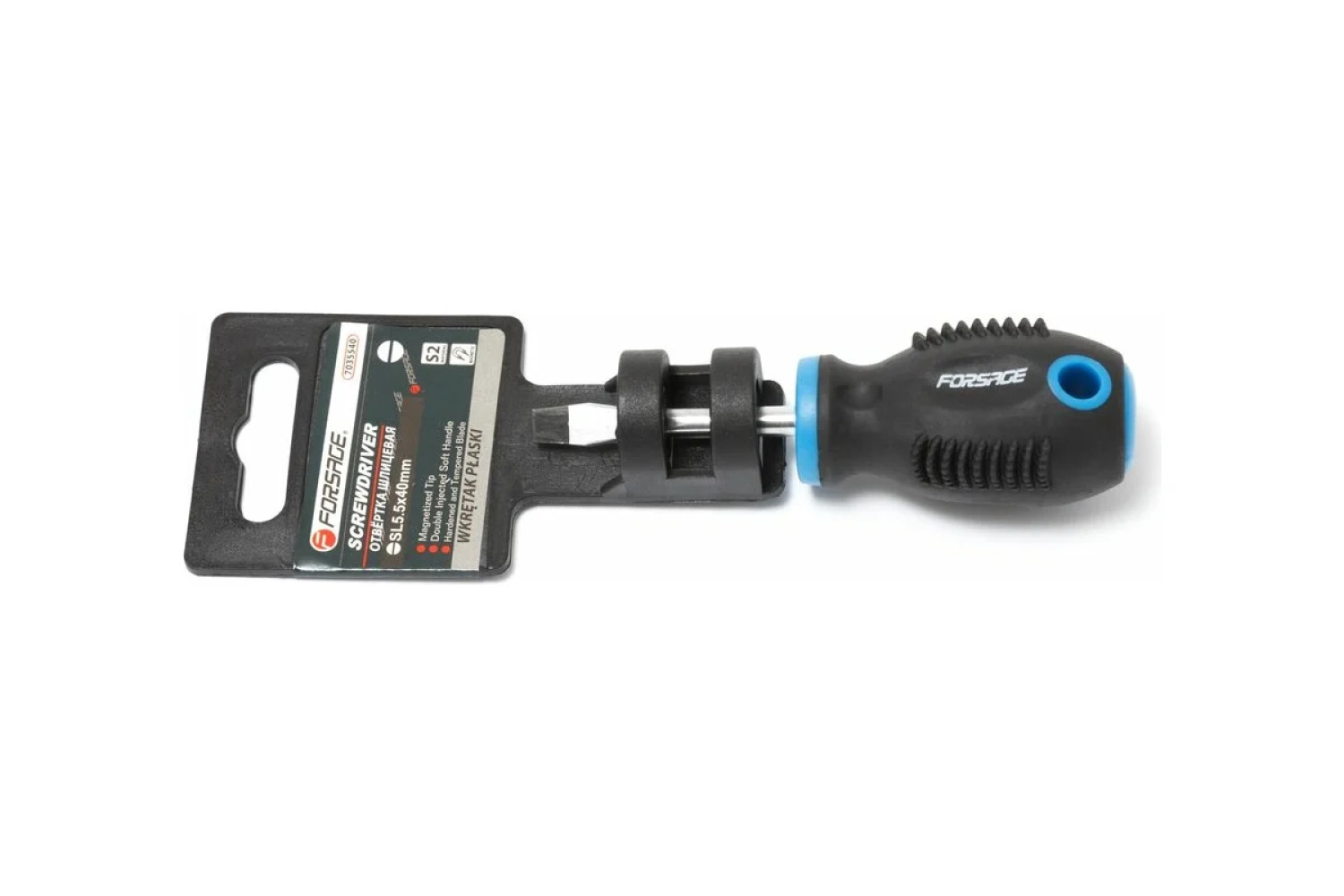 Plakanais magnētiskais skrūvgriezis Profi, FORSAGE, F-70355030, S2 SL 5.5x30 mm, 2-komponentu rokturis, melns/zils