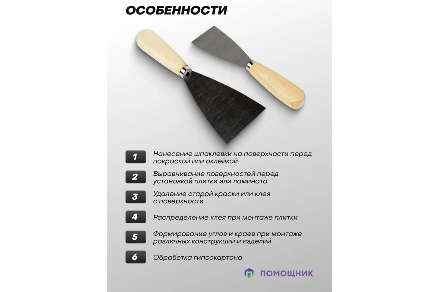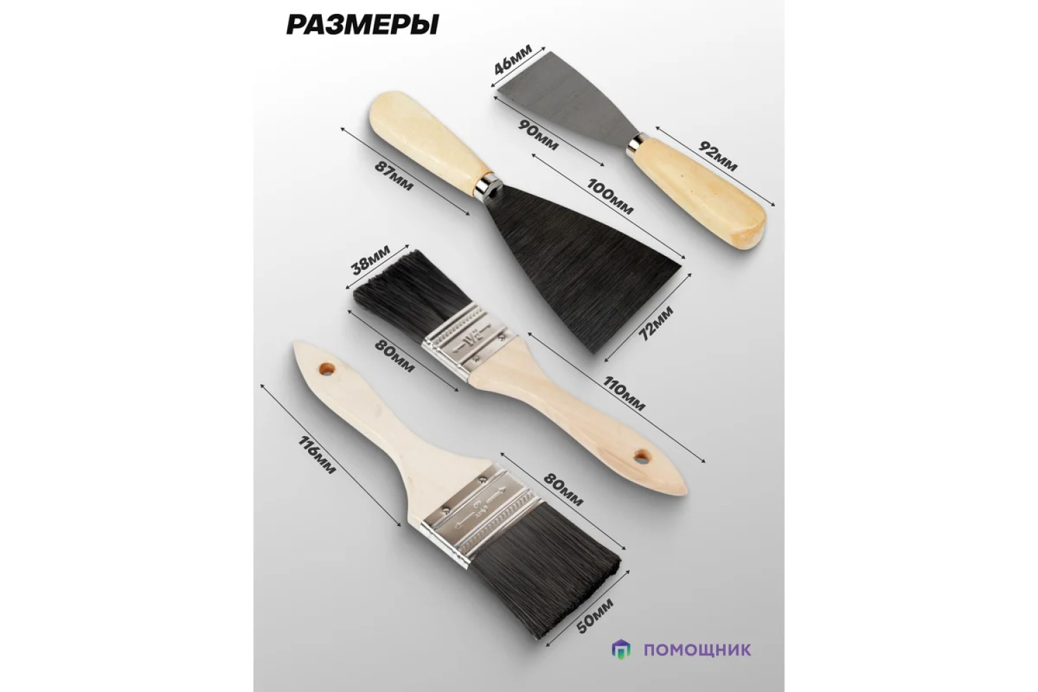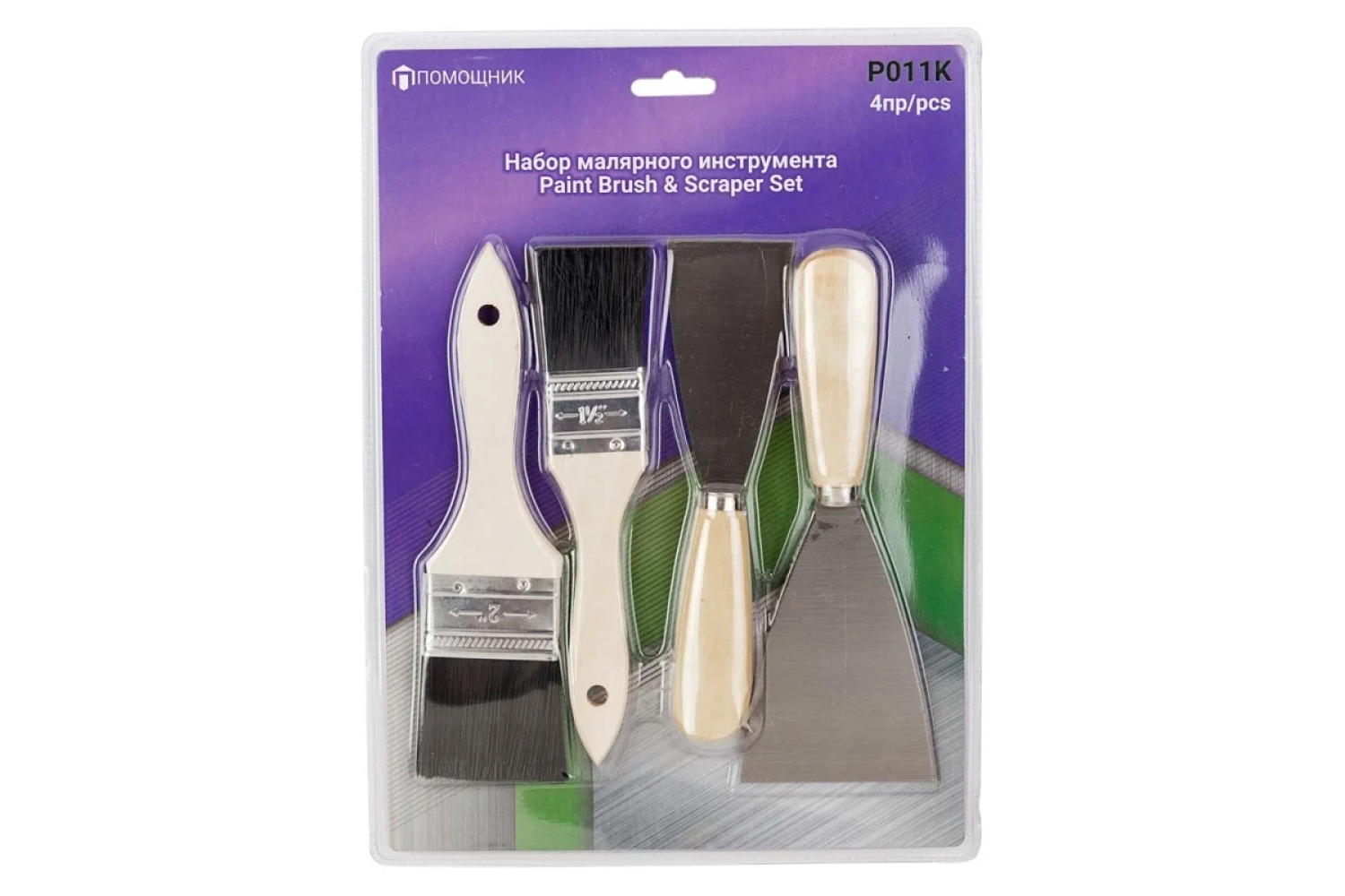 Mākslinieku rīku komplekts Pomocnik P011K ietver 4 priekšmetus, kas paredzēti apdares un remonta darbiem. Šis komplekts kļūs par neaizvietojamu palīgu gan profesionāļiem, gan mājas meistariem.