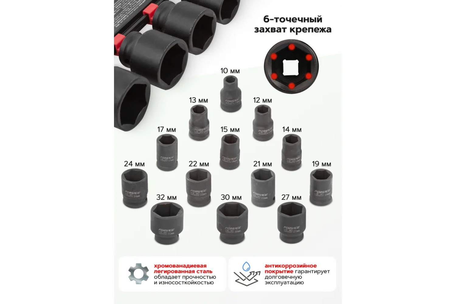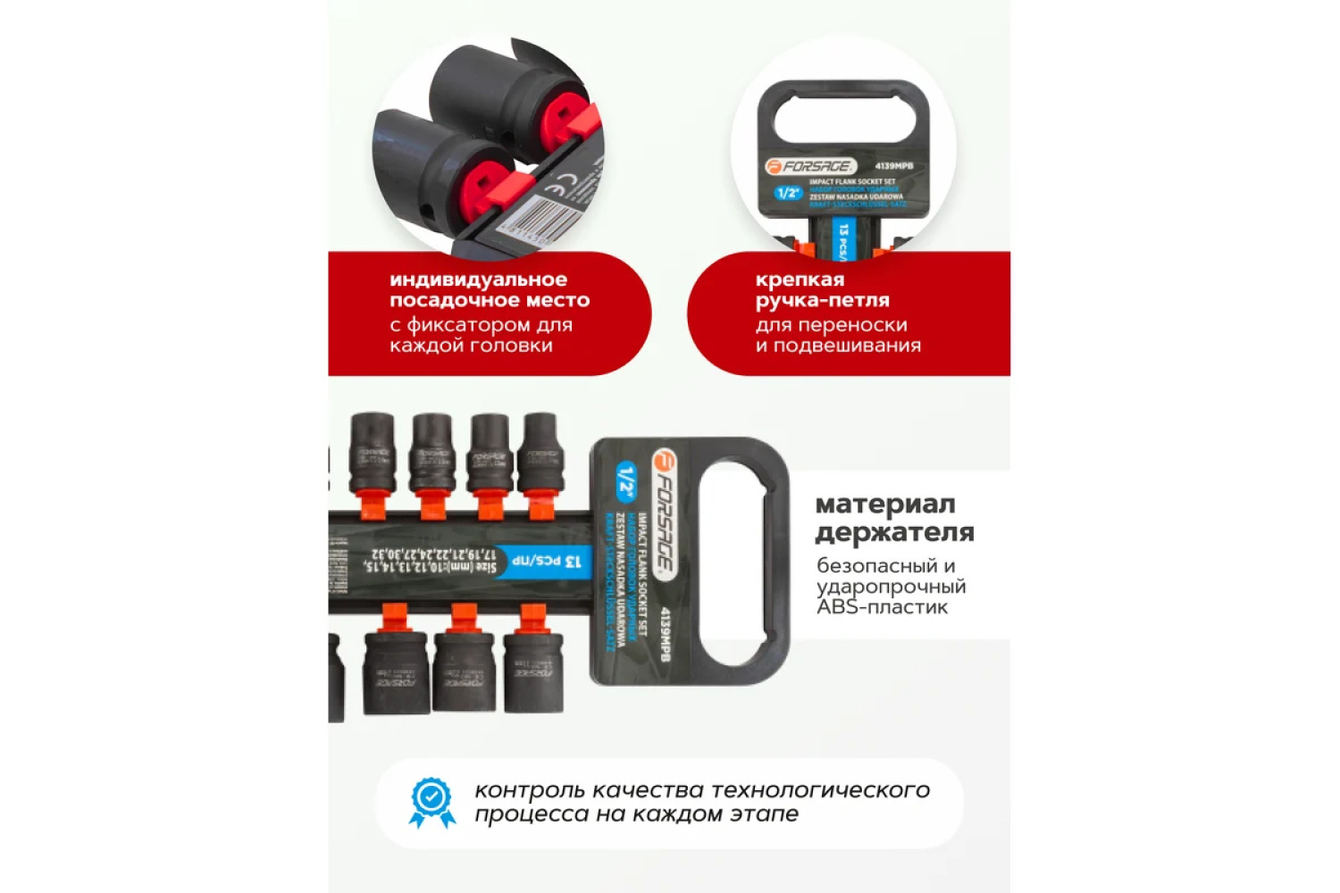 Triecienmuciņu komplekts, FORSAGE, F-4139MPB, 13 gab., 1/2 collu, CrMo tērauds