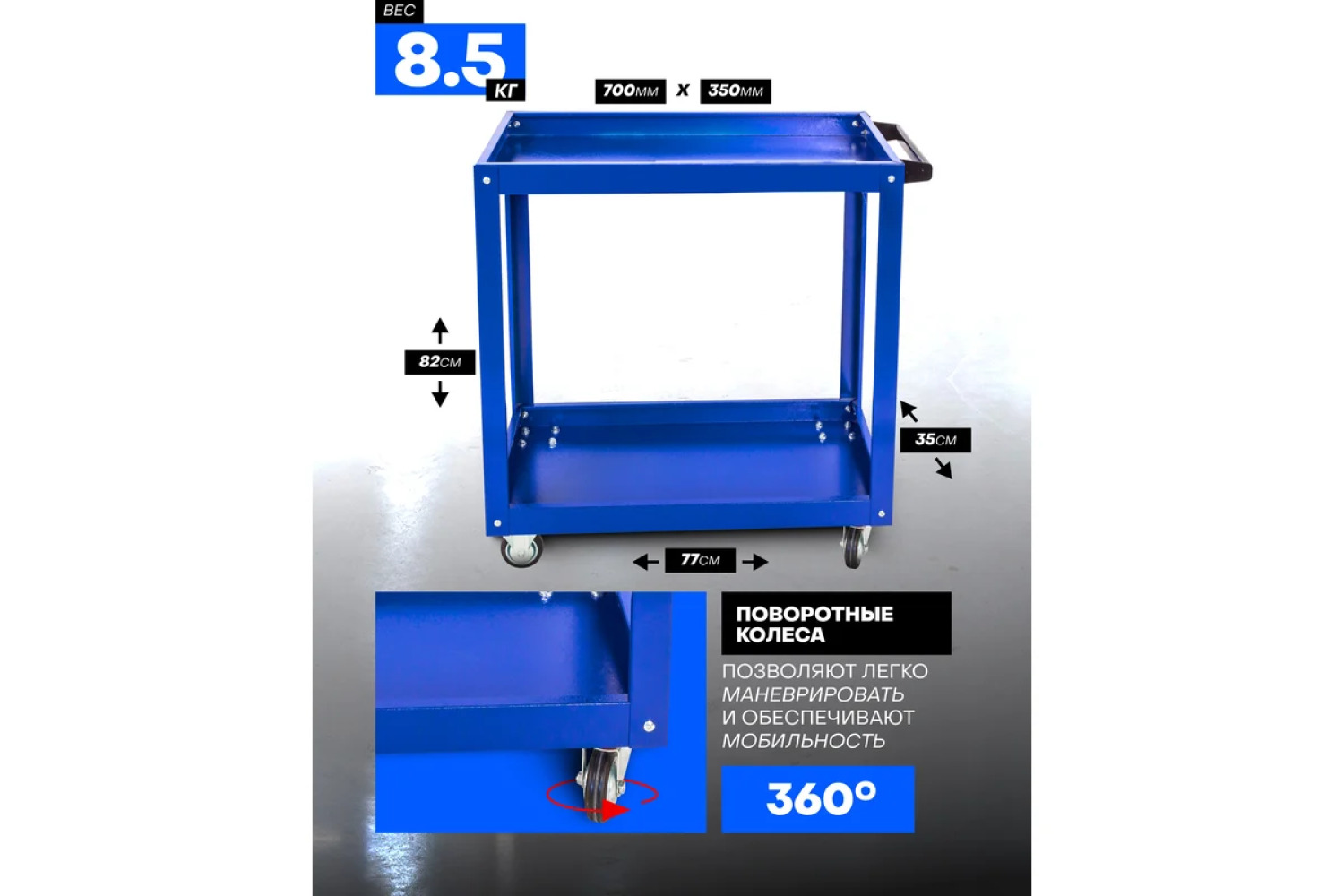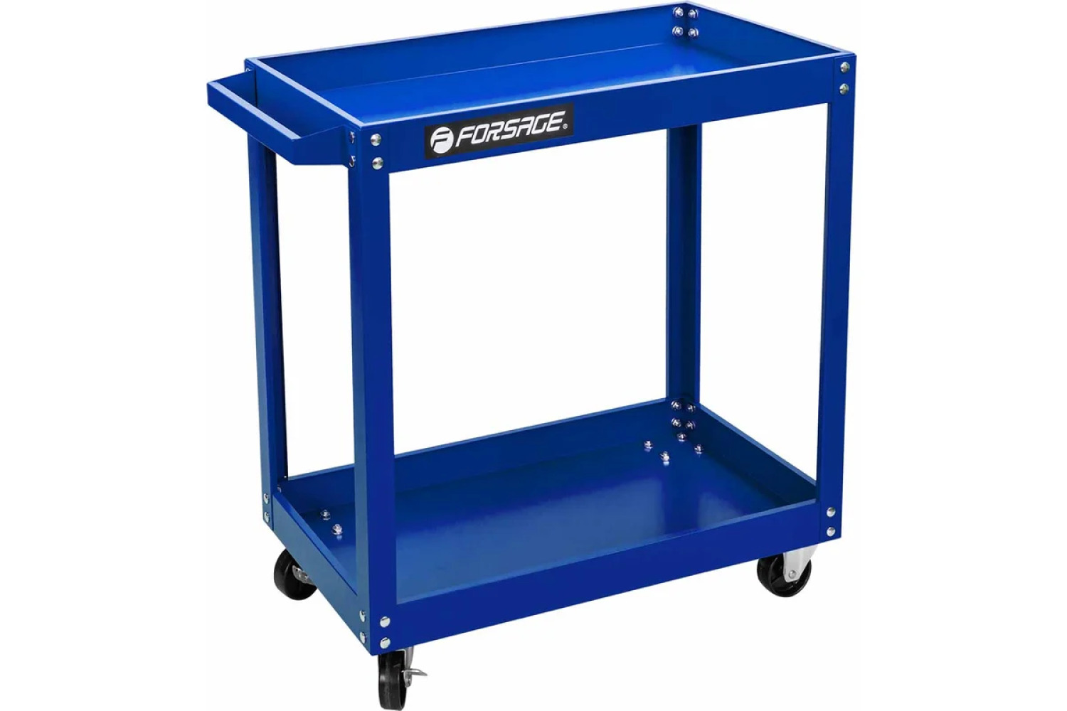 Metāla ratiņi uz riteņiem no zīmola FORSAGE, F-1141342. Ratiņi sastāv no 2 plauktiem, kas izgatavoti no izturīgiem metāla loksniem, nodrošinot konstrukcijas uzticamību un ilgmūžību.