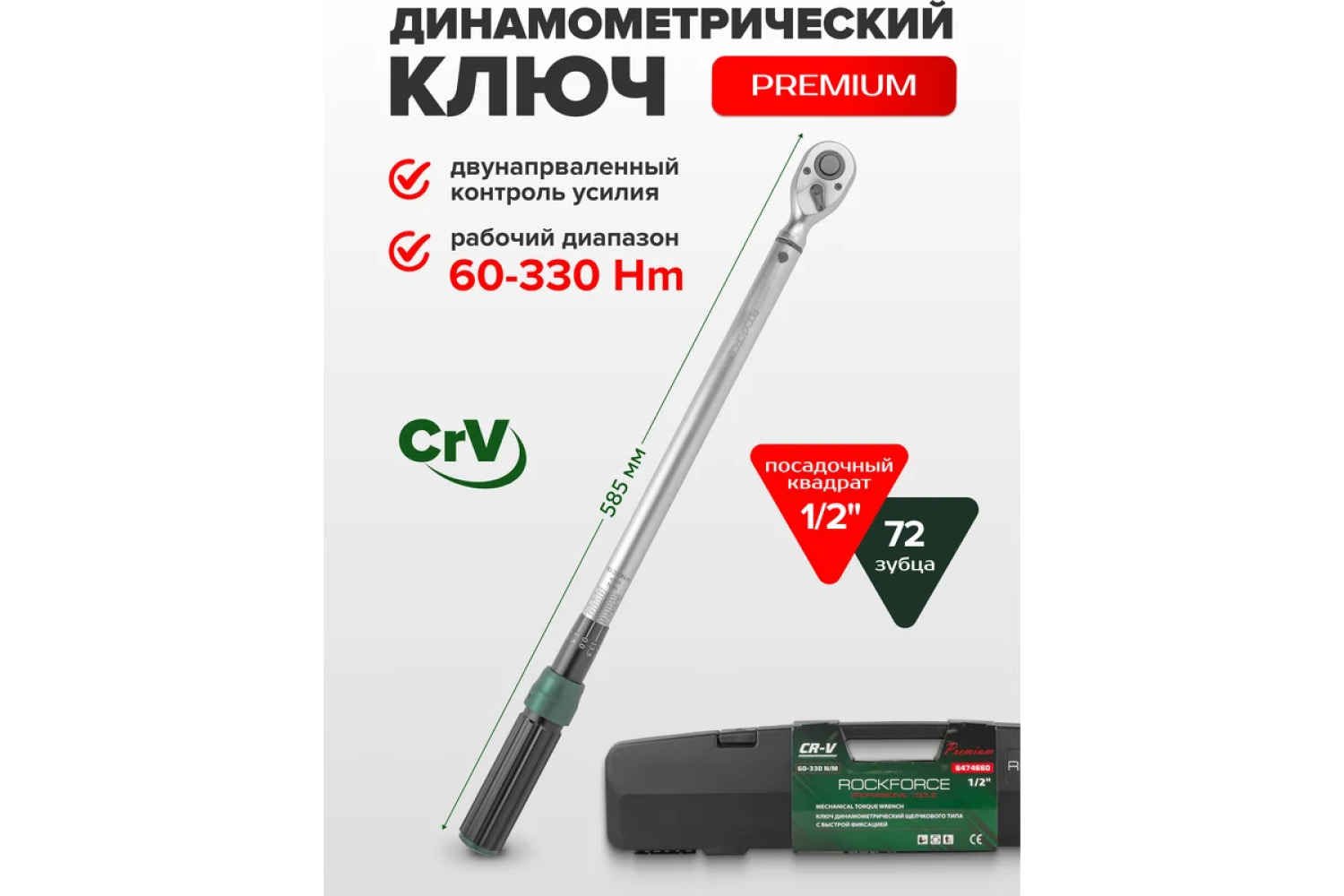 Dinamometriskā atslēga Premium, 1/2", 60-330 Nм no zīmola ROCKFORCE.