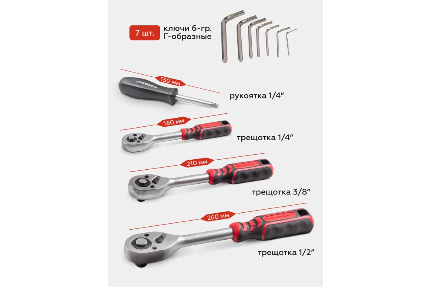 • 1 gab. - Rokturi 1/4" 150 mm