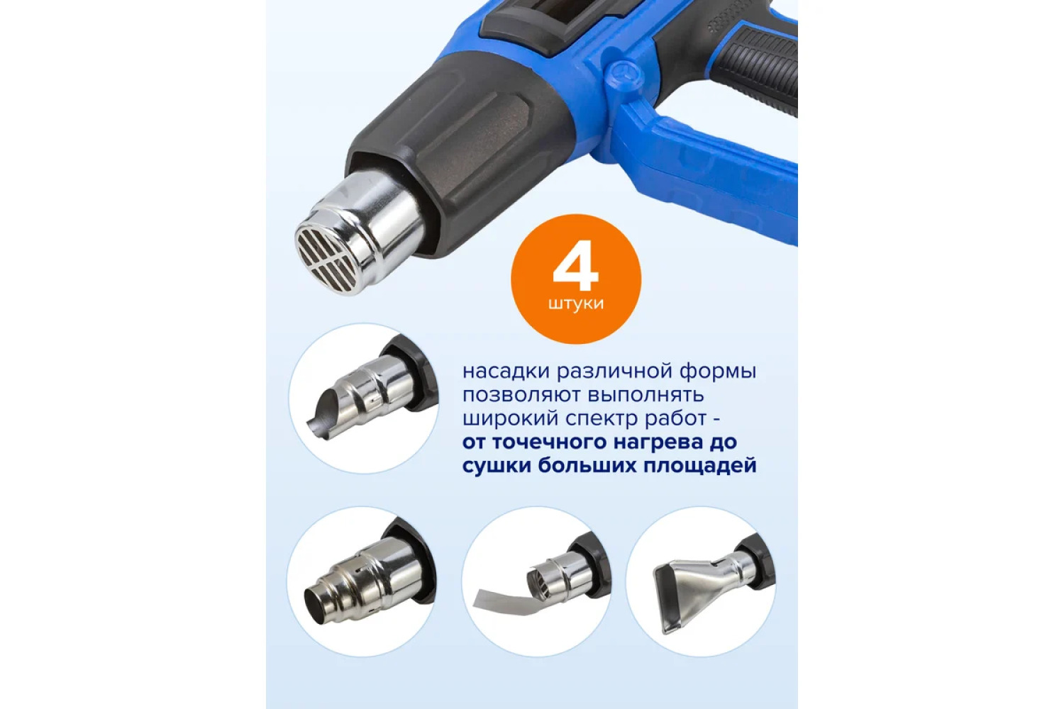 Celtniecības fēns, FORSAGE, F-HG65-2000LED, 2000W, 60/350/600°C, 50/300/500 l/min, 2m kabelis, 4 uzgaļi