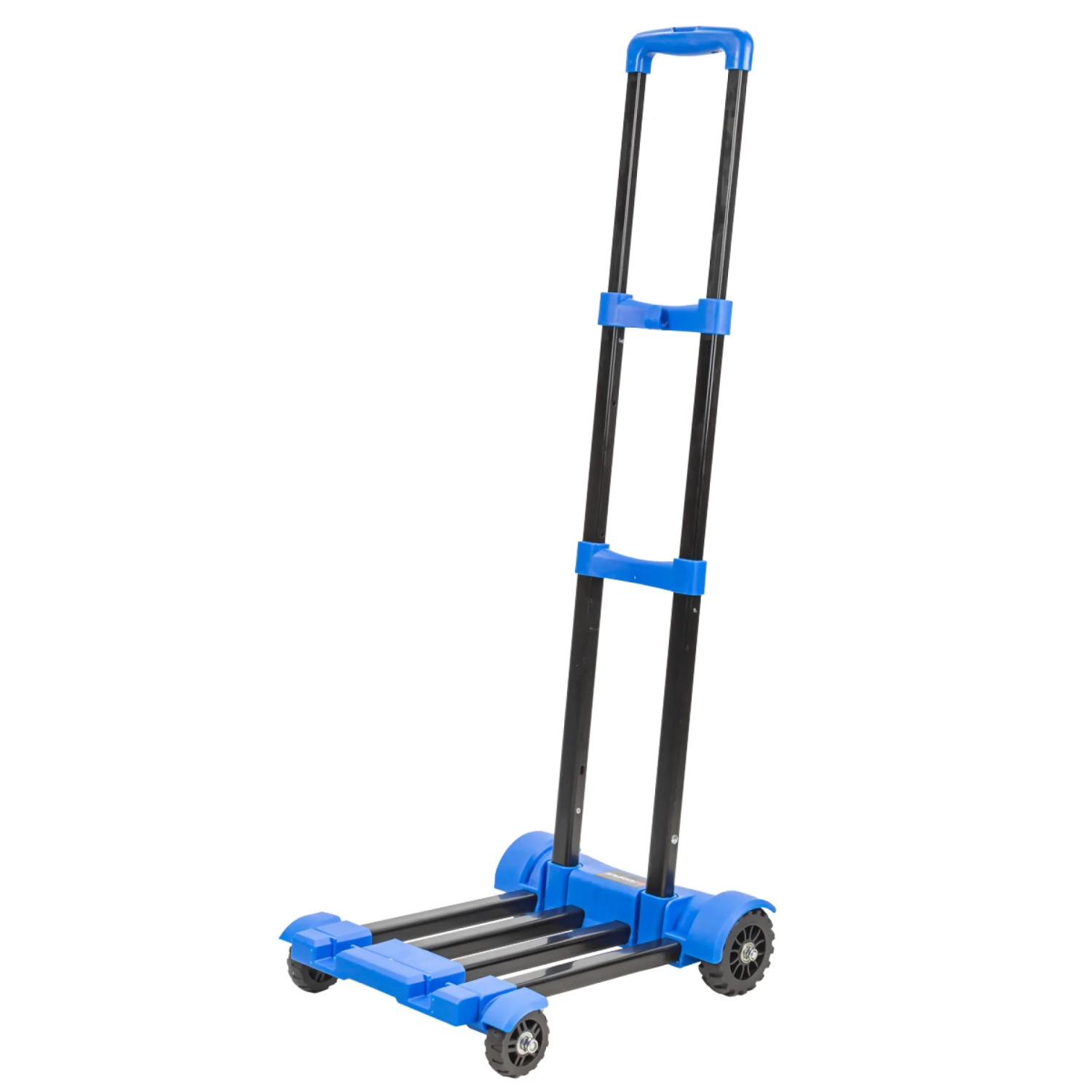 Saliekamie ratiņi ar teleskopisko rokturi FORSAGE F-L013 ir ideāls risinājums kravu un somu transportēšanai. To izmēri izklātā veidā ir 41x36x98cm, bet saliktā veidā – 52x30x11cm. Ratiņi ir aprīkoti ar 4 riteņiem, kuri ir klusi un nodilumizturīgi, kas būtiski uzlabo manevrējamību un stabilitāti. Ergonomisks rokturis ar regulējamu augstumu nodrošina ērtu lietošanu – vienkārši nospiediet pogu, lai noregulētu rokturi. Augstas izturības metāla atbalsta platforma nodrošina lielisku nesošo spēju ar maksimālo kravnesību 50kg. Komplektā iekļauta virve 1,65 metri ar āķiem kravas nostiprināšanai.
