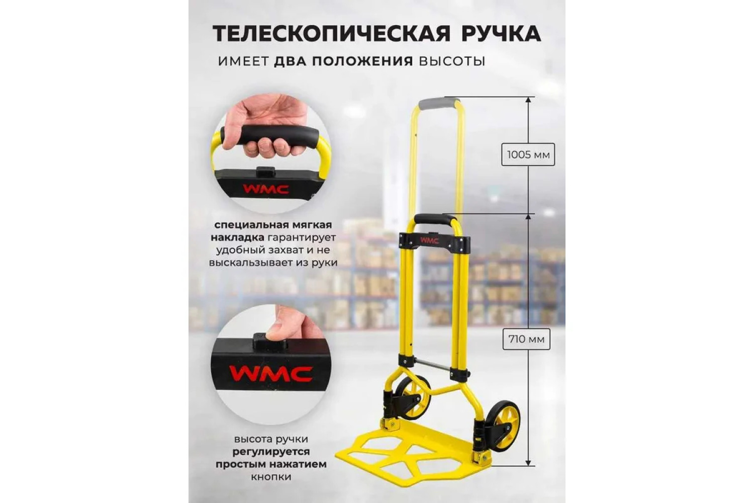 Salokāmi rokas ratiņi ar teleskopisku rokturi, WMC TOOLS, WMC-GZS90S, ir lielisks risinājums nelielu kravu pārvadāšanai ar slodzi līdz 90 kg. Ratiņi apvieno kompaktumu un manevrējamību, padarot tos ideālus ikdienas lietošanai.