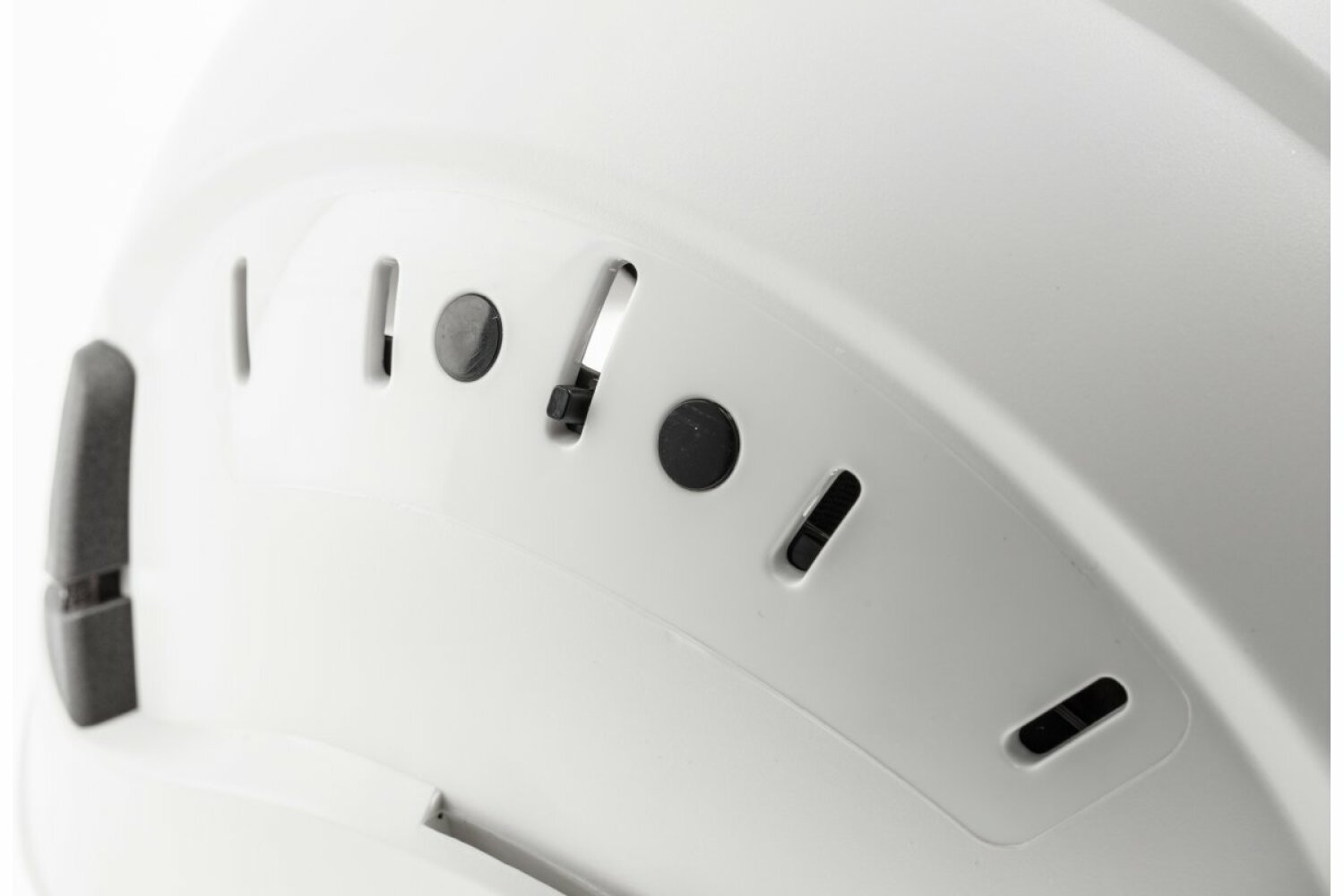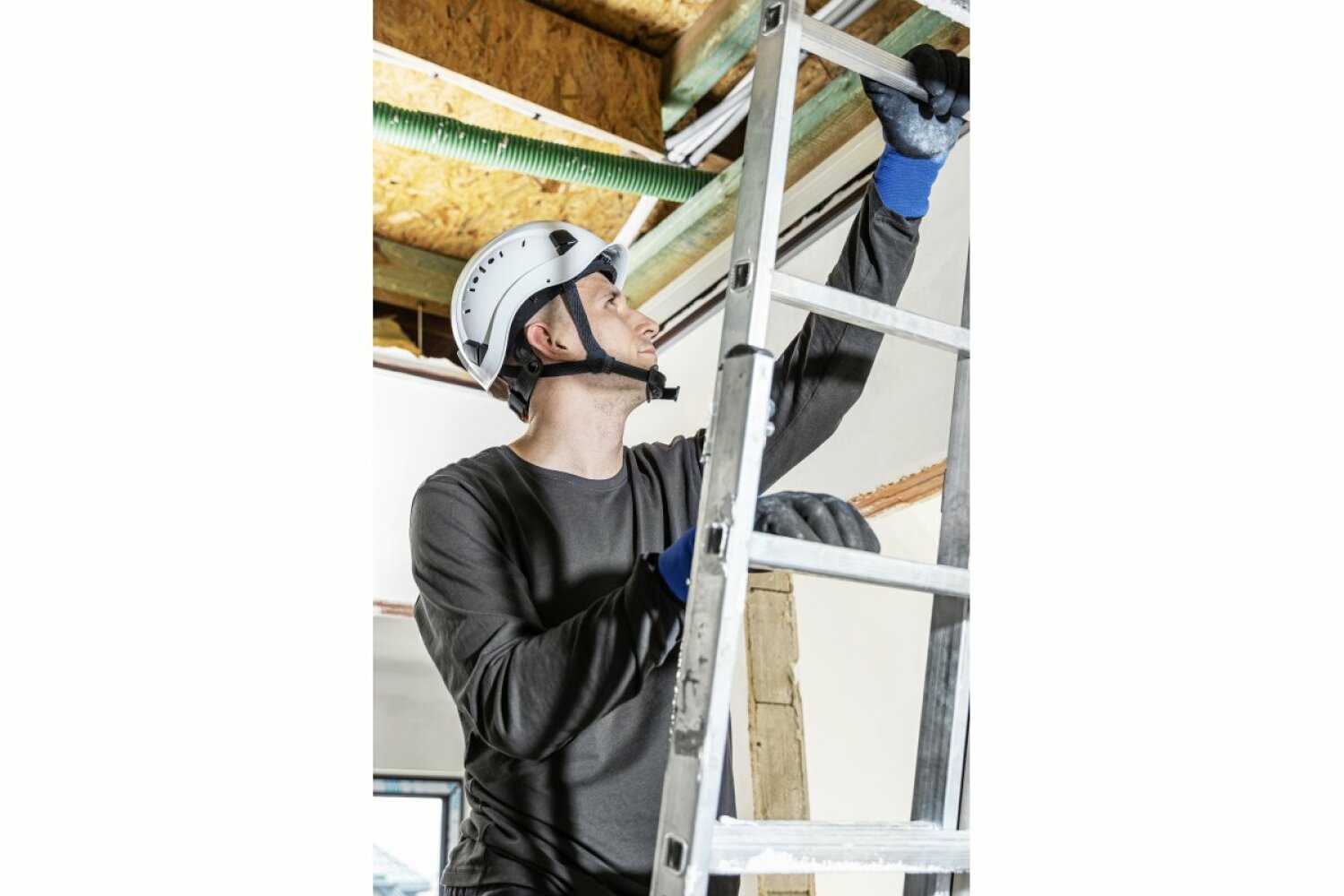 aizsardzība pret mehāniskiem riskiem: vertikālā trieciena absorbcija, zoda siksnas atvēršana ar spēku no 150 līdz 250 N, caurduršanas izturība (ass objekti)