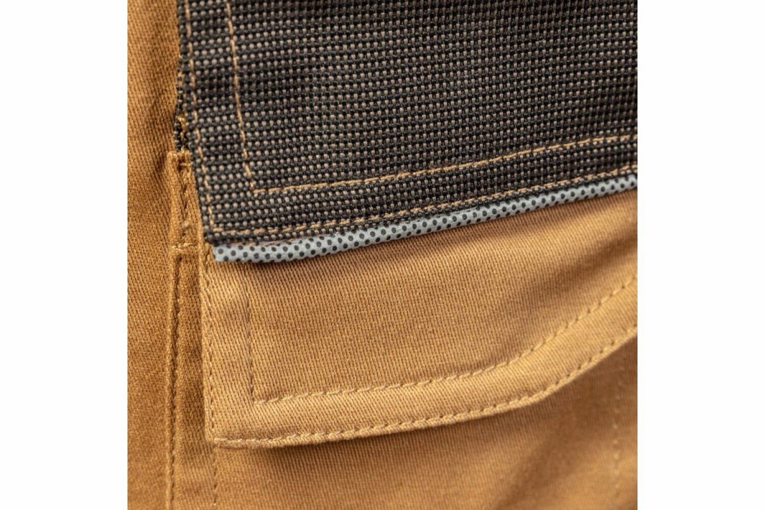 7 kabatas: – 2 krūšu kabatas, ieskaitot vienu ar Velcro aizdari; – 2 dziļas jostas kabatas; – 1 kravas kabata; – 2 izturīgas aizmugurējās kabatas ar Velcro aizdarēm