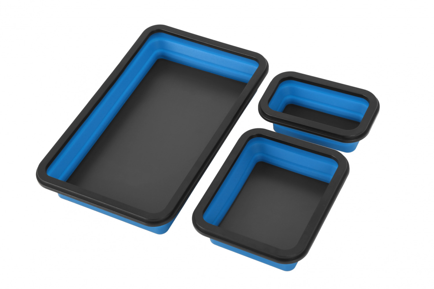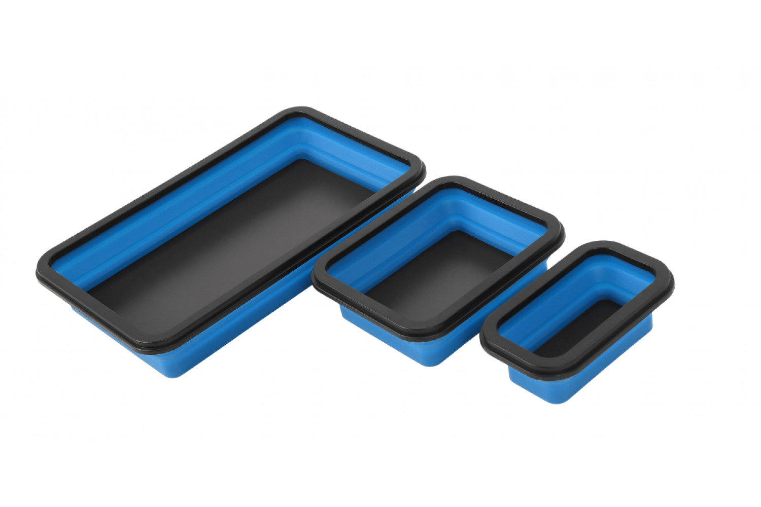 Šis 3 saliekamo trauku komplekts ir praktisks palīglīdzeklis, kas atvieglo skrūvju, uzgriežņu, uzgriežņu un citu mazu detaļu un priekšmetu uzglabāšanu darba laikā.