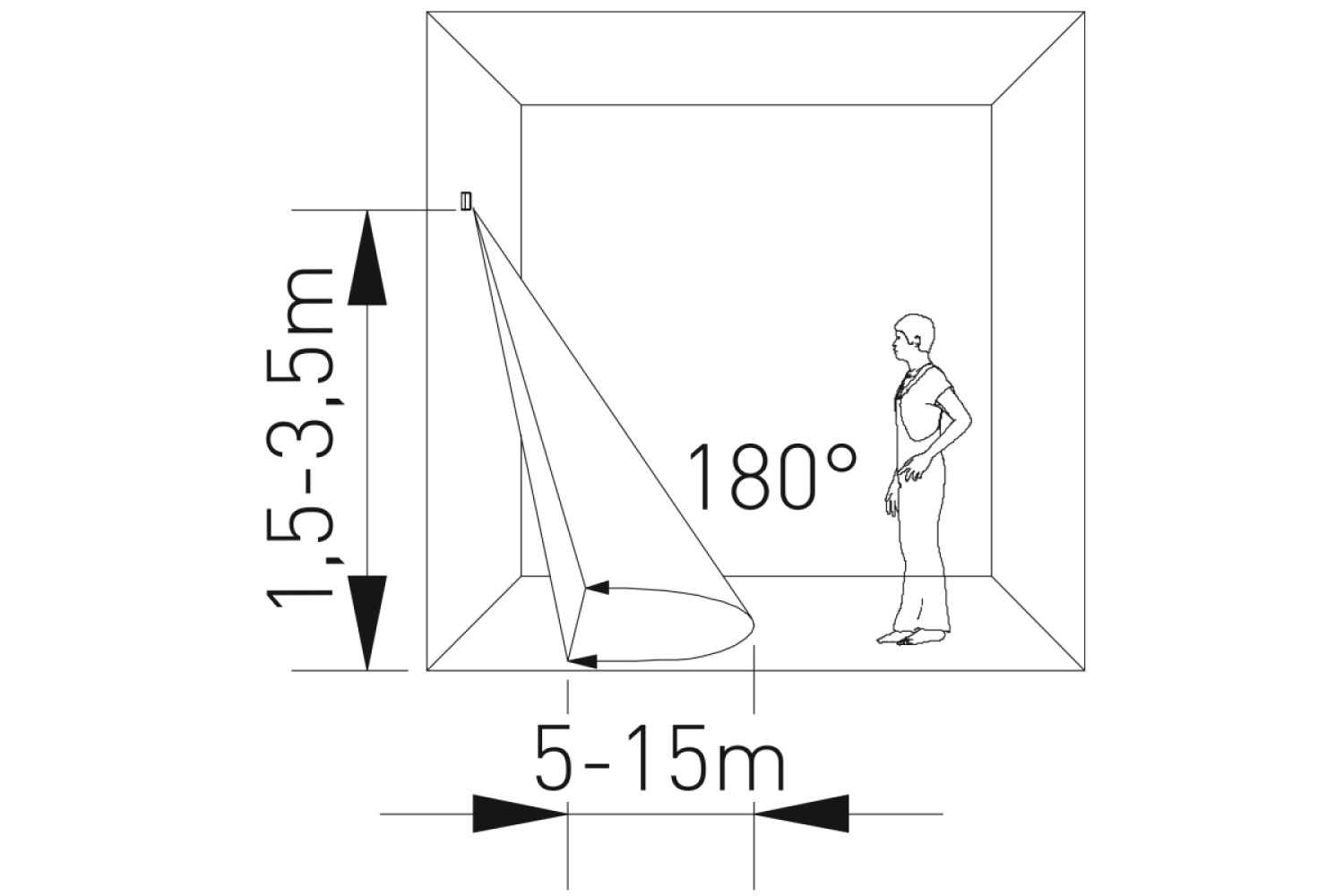 Maksimālais horizontālais sensora darbības leņķis [⁰]: 360