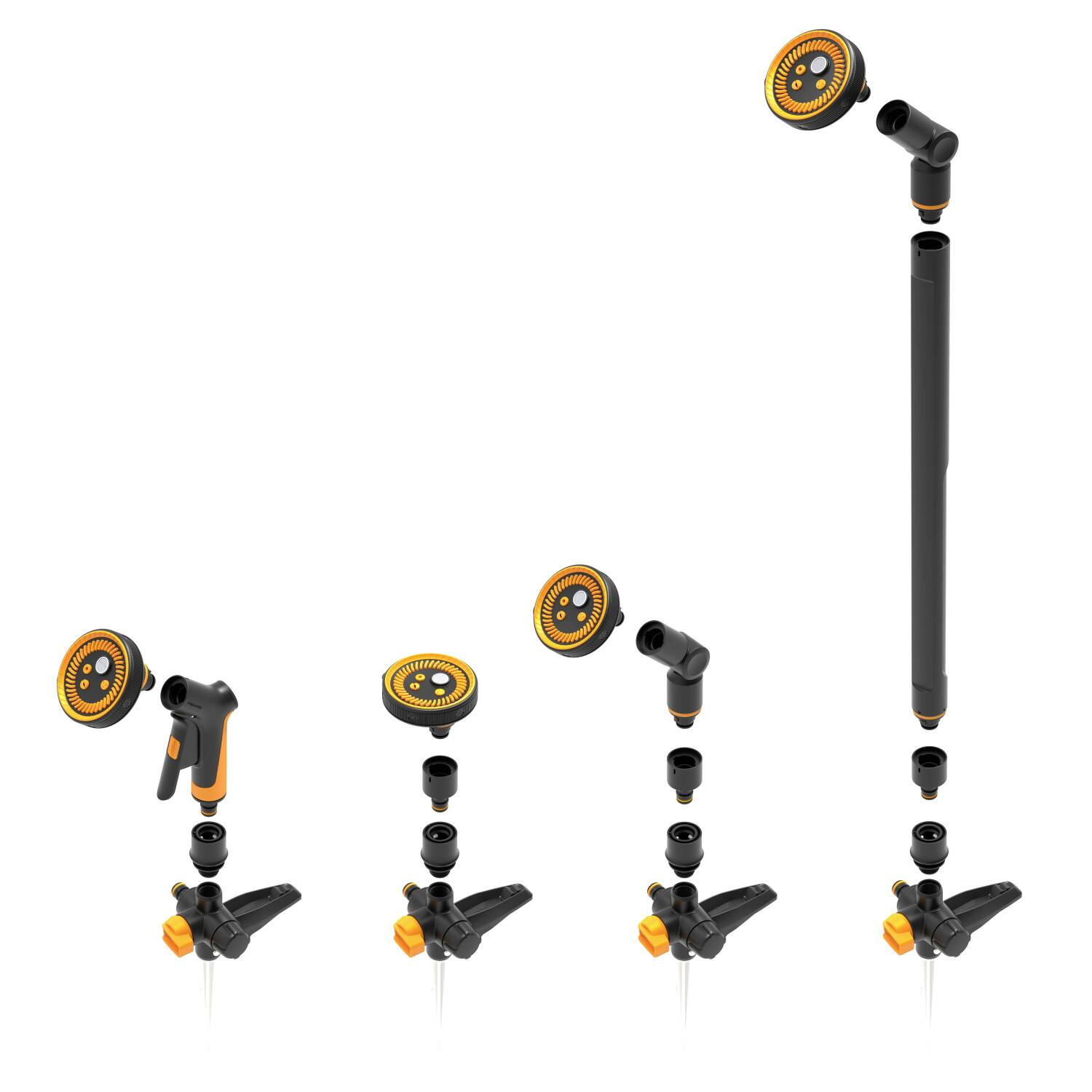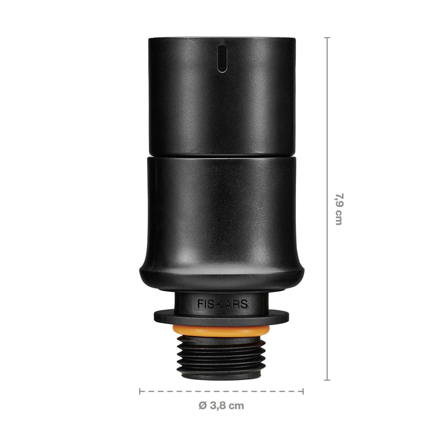 Fiskars precizitātes laistīšanas adapteru komplekts ir ideāls risinājums, lai izveidotu perfektu laistītāju vietējai laistīšanai. Ar šo praktisko 2 daļu komplektu Fiskars izsmidzinātāji, izsmidzināšanas galvas un laistīšanas stieņi var tikt piestiprināti pie laistītāja pamatnes un viegli pārvērsti par laistītāju. Galvenais, lai individuāli pielāgotu laistītāju, ir universāls ātrās savienojuma adapters ar 1/2" vītni, kas var tikt piestiprināts pie jebkuras standarta stacionārās laistītāja pamatnes. Īpašais adapters der Fiskars izsmidzinātāja galvai un laistīšanas stienim, tādējādi tos var piestiprināt pie esošās laistītāja pamatnes. Tādējādi, piemēram, laistīšanas stienis kļūst par precīzu laistītāju ziediem vai stādiem īsā laikā. Izsmidzinātāja un laistītāja pamatnes kombinācija ir ideāla mazu platību laistīšanai ar jauniem zāliem vai stādiem, kas atrodas zemu.
