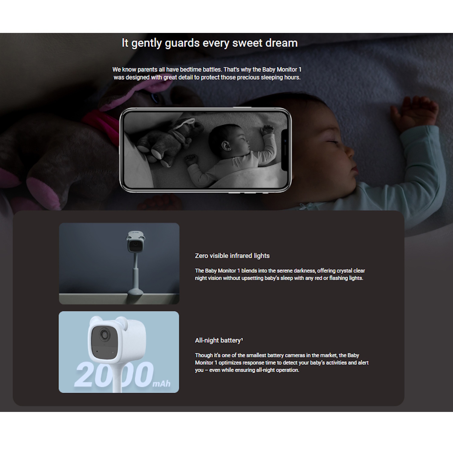 ✔ AI darbinātas viedas brīdināšanas – Kamera nosaka raudāšanu, cilvēku formas un kustības ārpus gultiņas, nosūtot nekavējoties paziņojumus vecākiem caur EZVIZ mobilā lietotne.