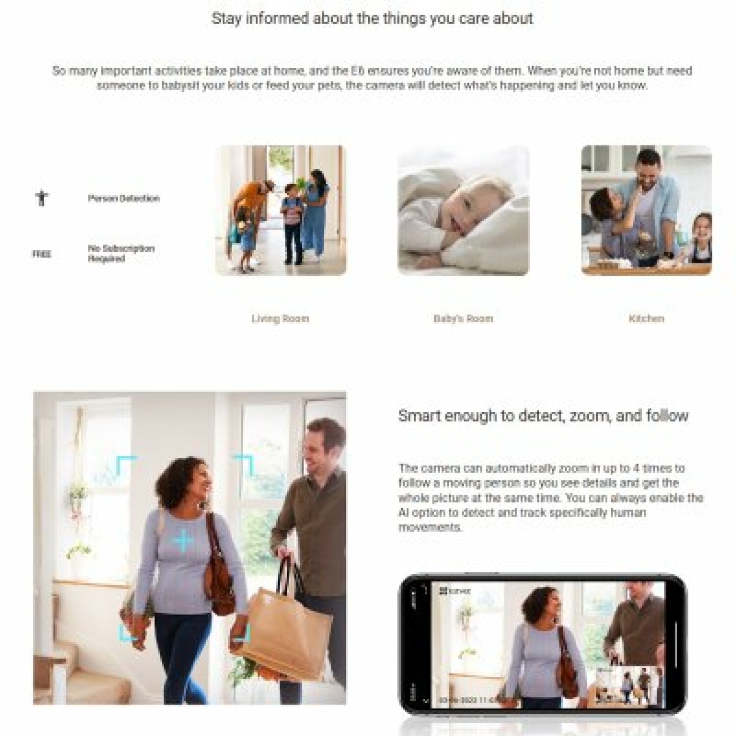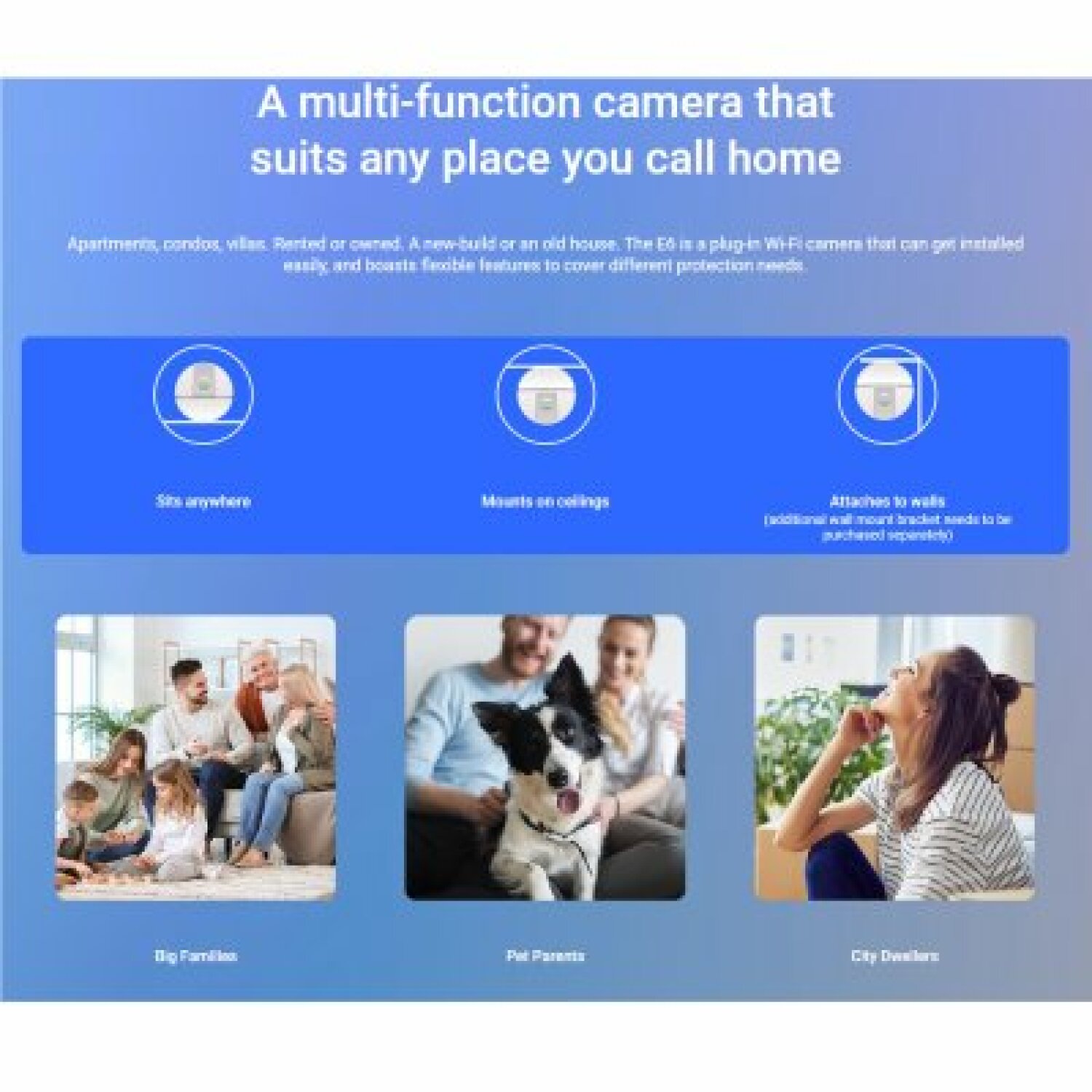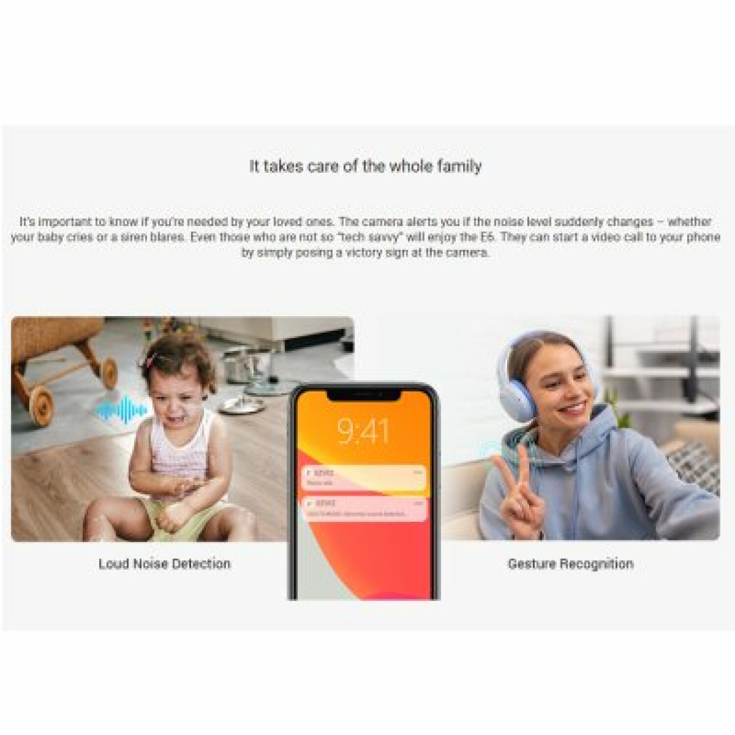 Ar 360° panorāmas pārklājumu un augstas izšķirtspējas 2K izšķirtspēju E6 nodrošina, ka katra jūsu iekštelpu telpas leņķa ir novērota ar izcilu skaidrību.
