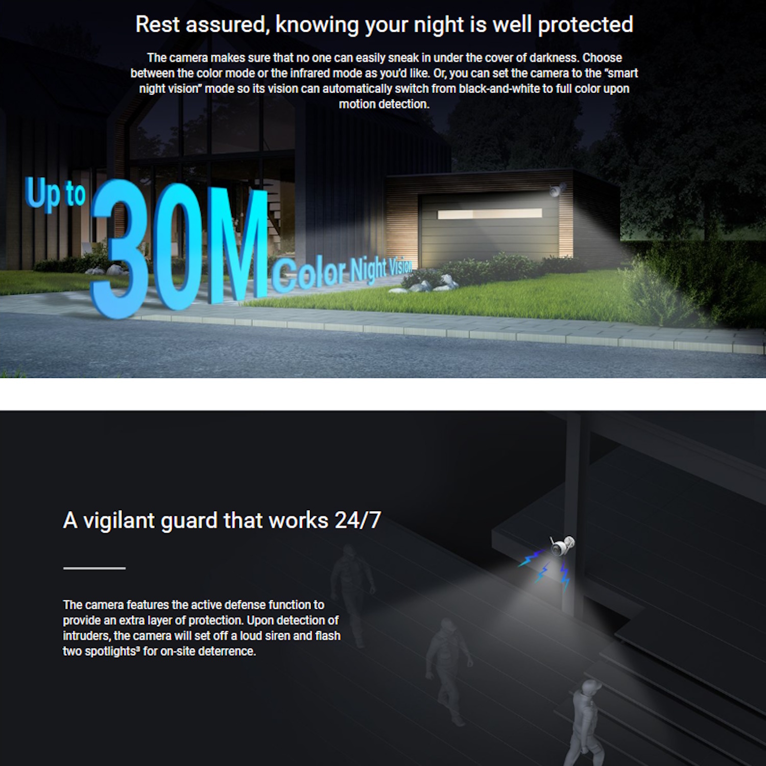 • 360° Aizsardzība ar Viediem Brīdinājumiem – Saņemiet nekavējošus mobilos paziņojumus, izmantojot EZVIZ lietotni, kad tiek konstatēta kustība, informējot jūs par jebkuru aktivitāti.