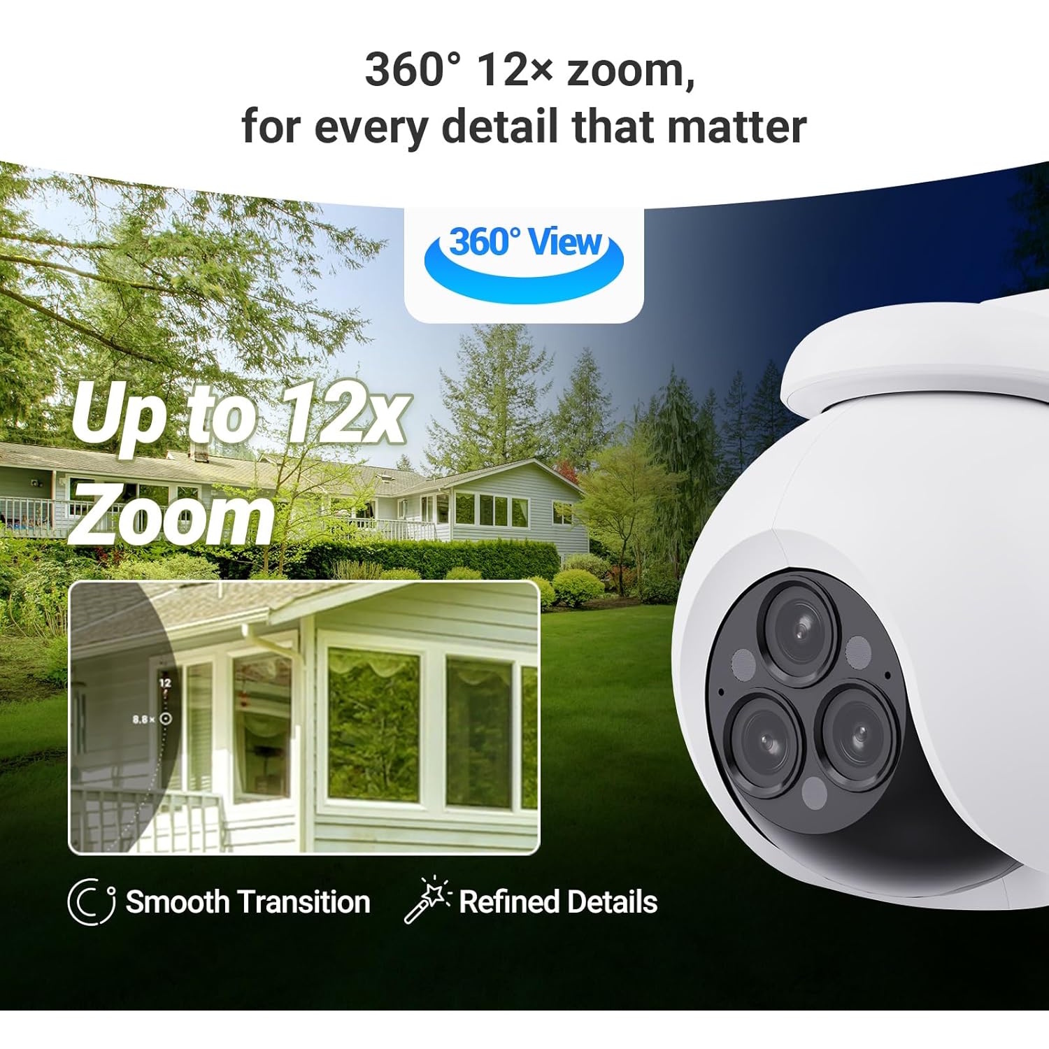 Izbaudiet profesionālas kvalitātes panorāmas uzraudzību ar EZVIZ H80 Āra Wi-Fi kameru, kas izstrādāta ar trīskāršām 4MP lēcām, lai nodrošinātu 360° gudru drošības pieredzi. Šis jaudīgais produkts apvieno plaša leņķa un telefoto lēcas ar 12x jauktu tālummaiņu, ļaujot asu cilvēku un transportlīdzekļu identificēšanu pat līdz 50 metru attālumā. Iekļaujot inteliģento AI noteikšanu, IP67 novērtēto izturību un pilnīgu attālināto kontroli, tā ir jūsu galvenā ārējo aizsardzības ierīce mājām, birojiem vai teritorijas drošībai.