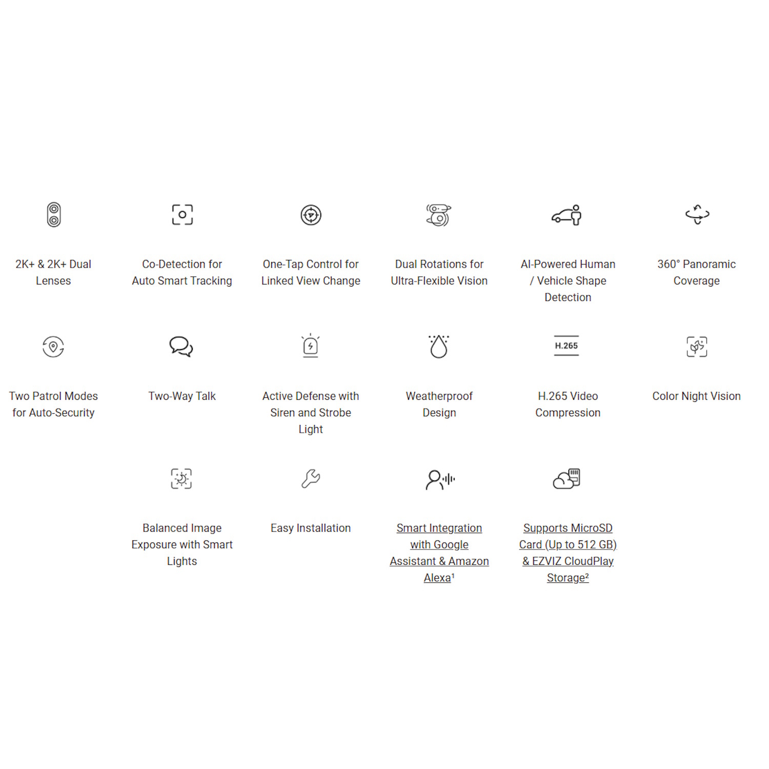 • Uzglabāšana: MicroSD līdz 512 GB vai pēc izvēles EZVIZ CloudPlay.