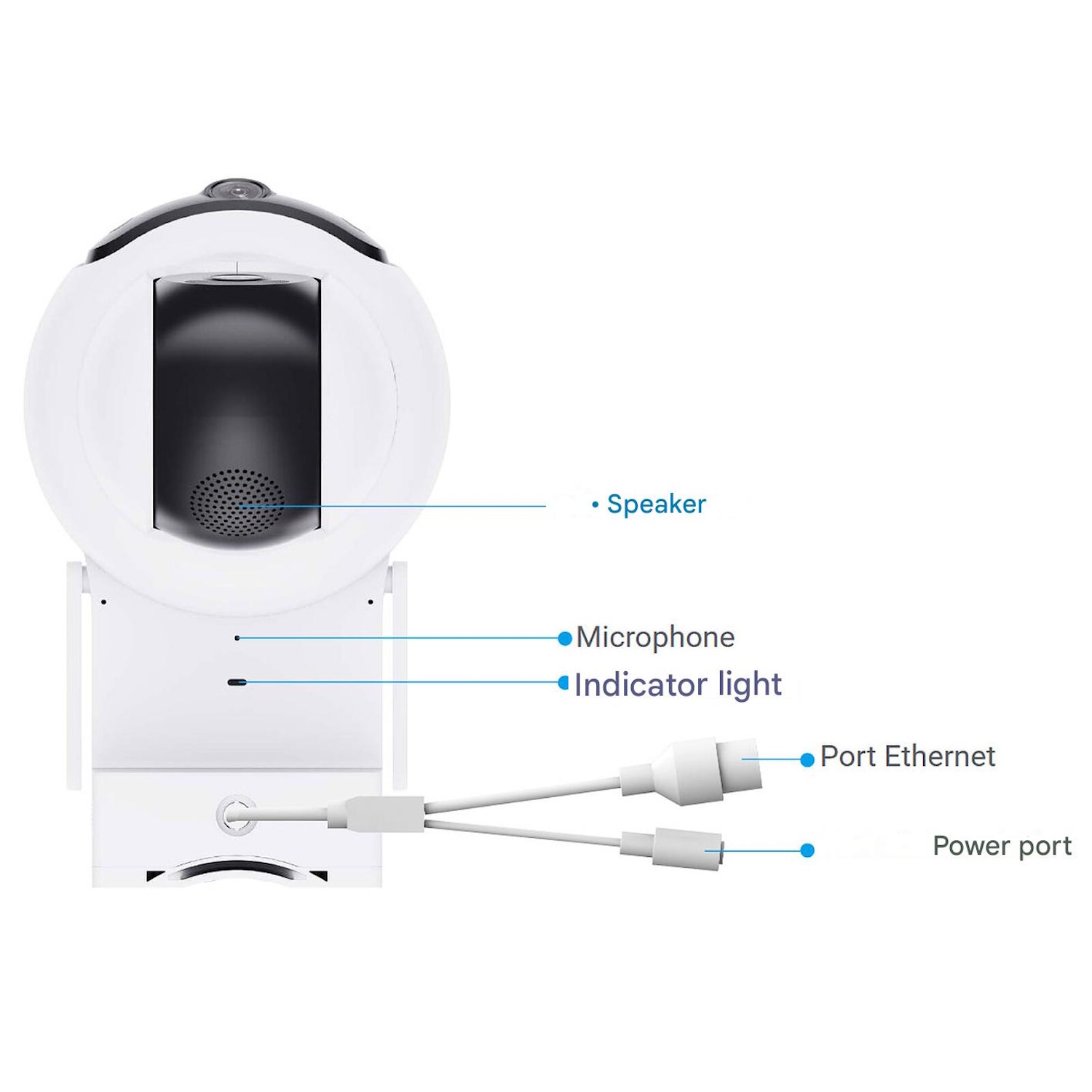 • Rotācija: Pan & Tilt (apakšējā lēca); fiksēta plaša leņķa augšējā lēca.
