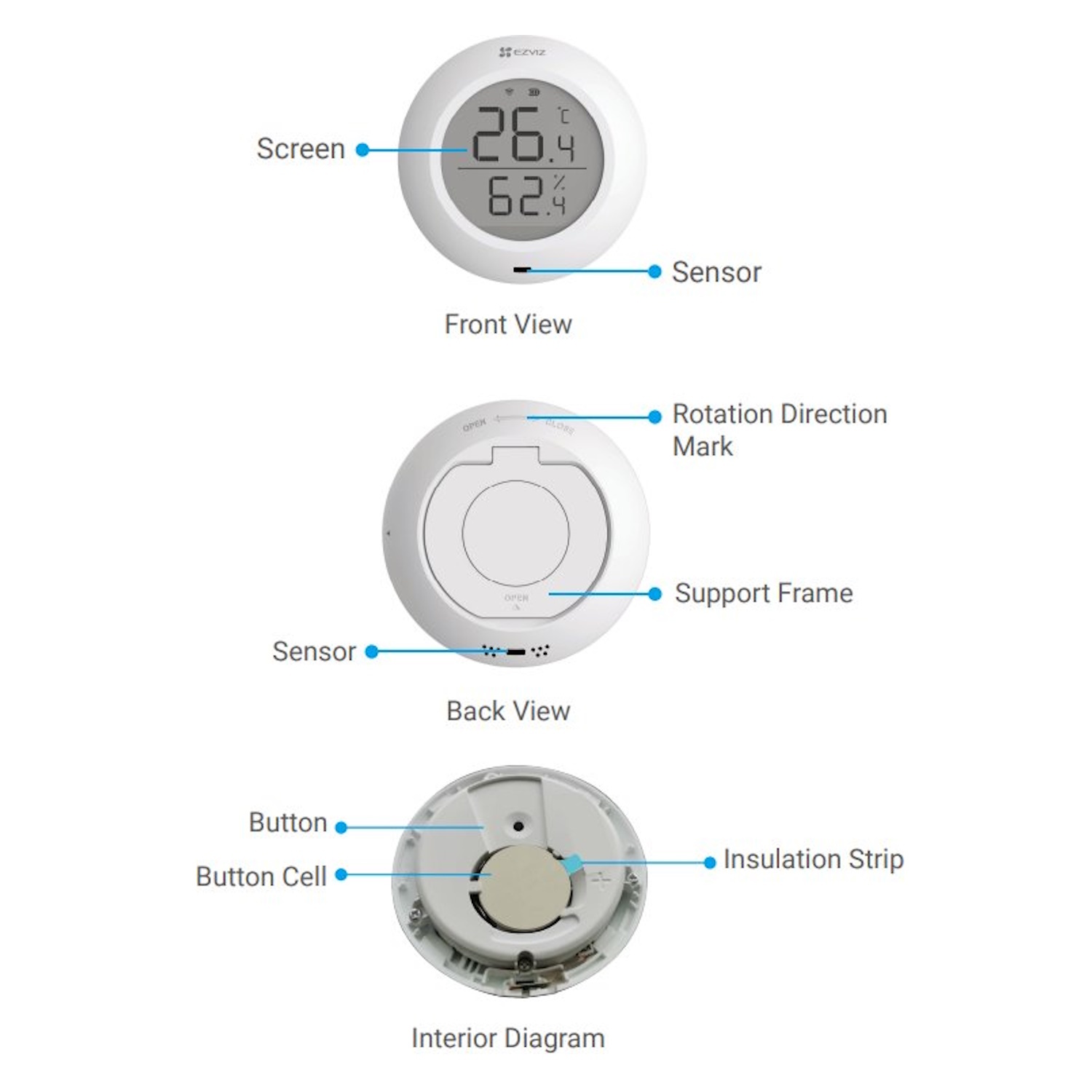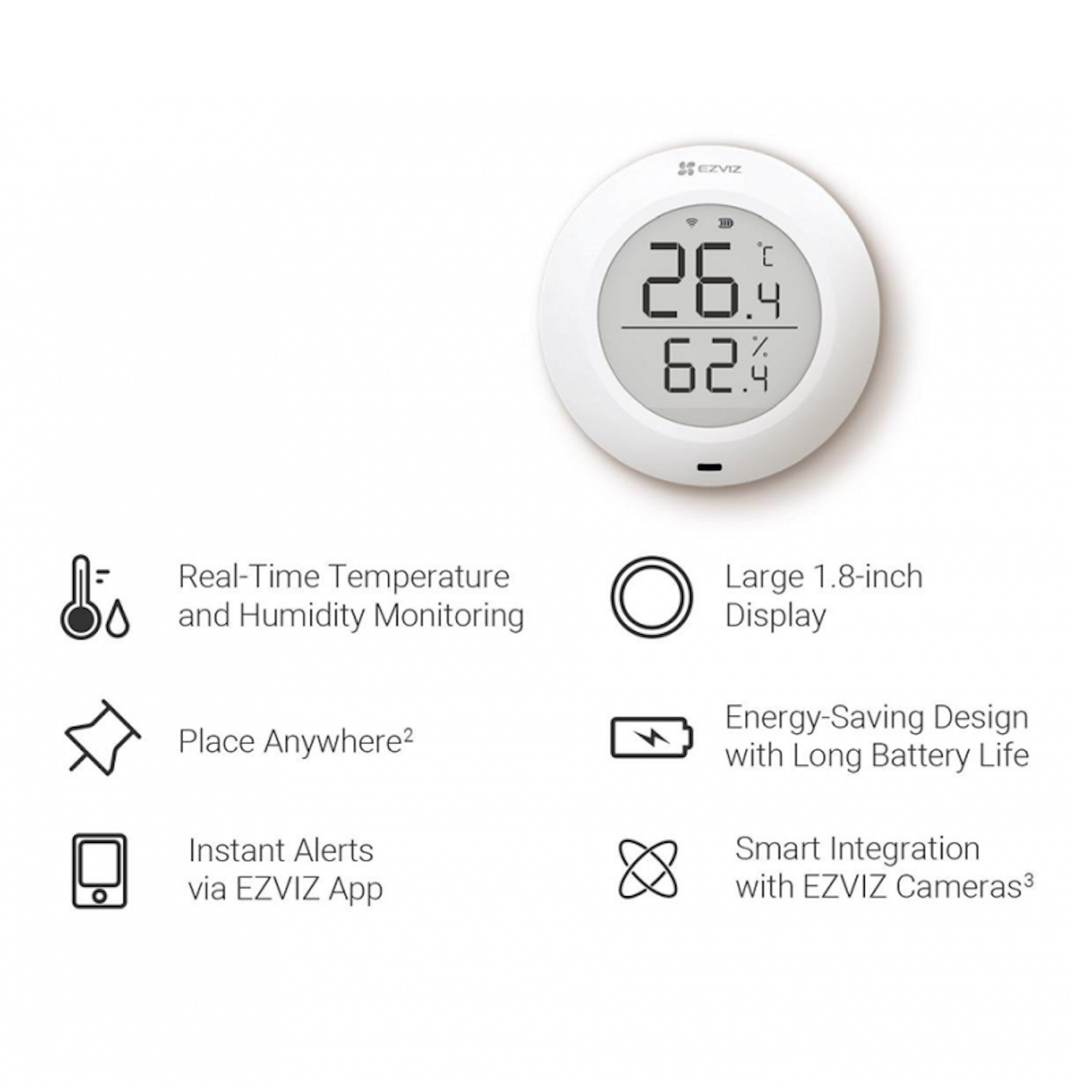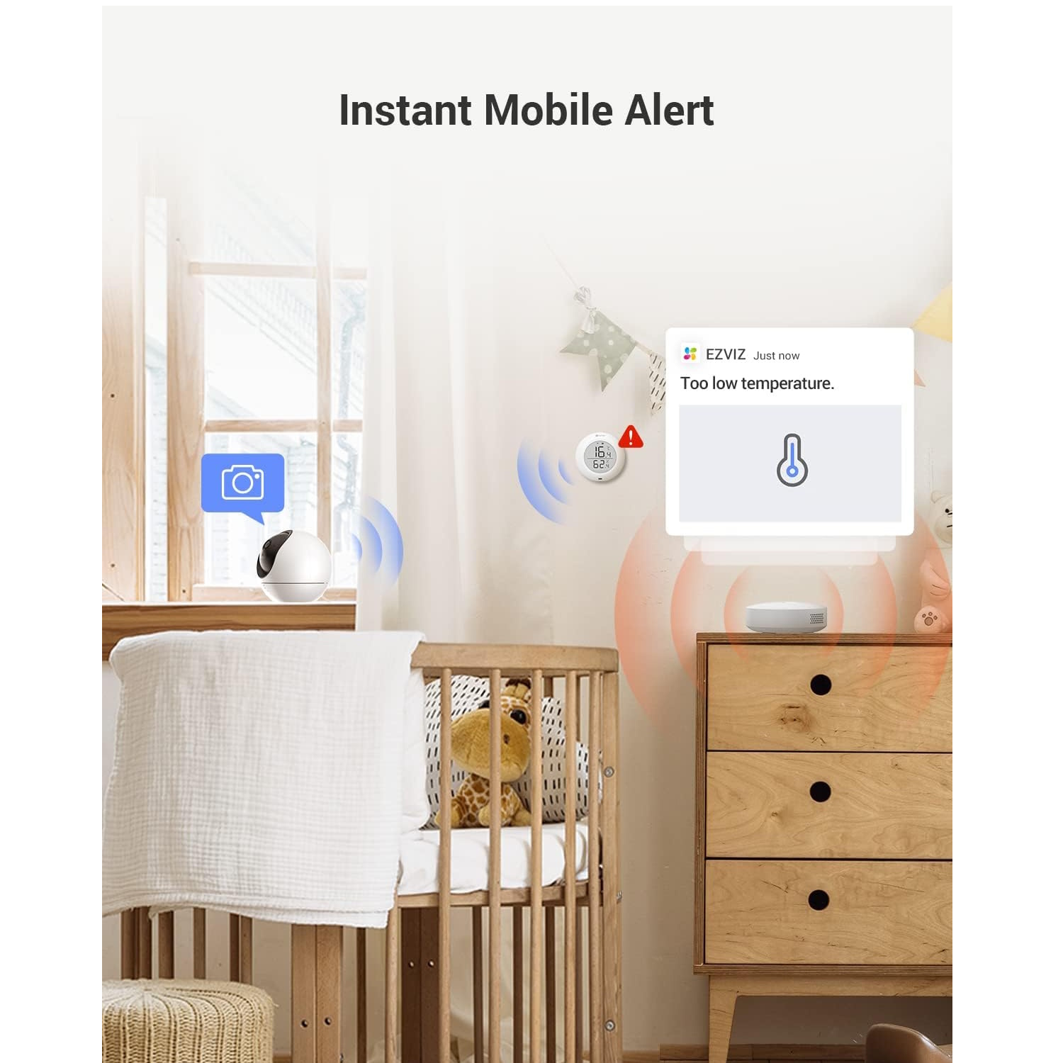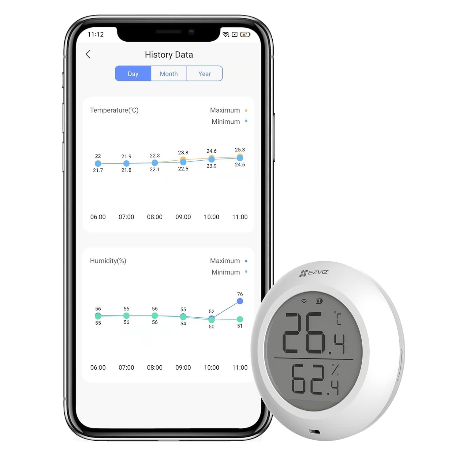 - Nekavējoties Mobilie Brīdinājumi – Saņemiet reāllaika paziņojumus savā iPhone, iPad vai EZVIZ lietotnē, kad temperatūras vai mitruma izmaiņas pārsniedz iepriekš noteiktās robežas.