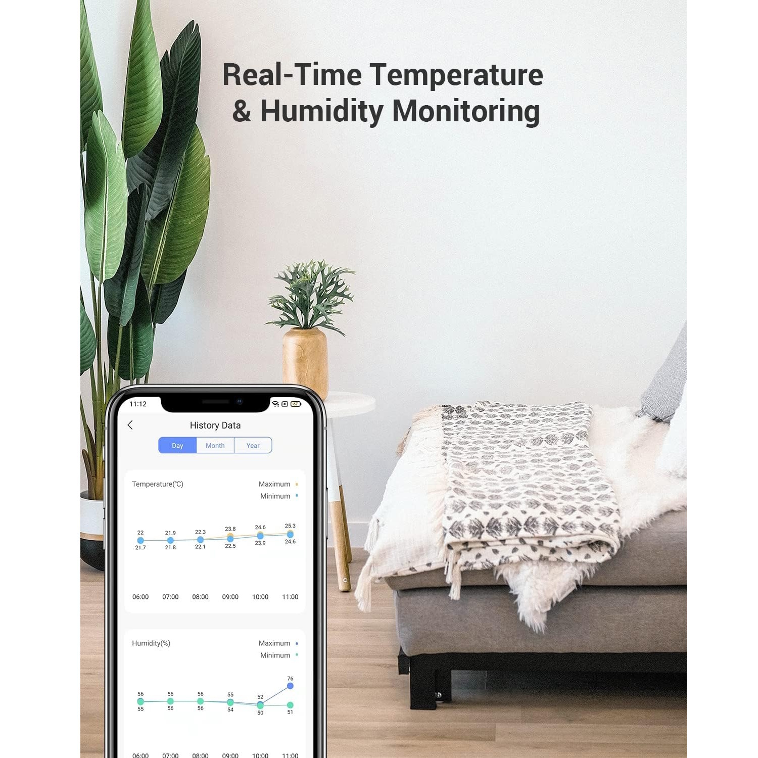 - Uzraudziet un Optimizējiet Mājas Komfortu – Izsekojiet un pielāgojiet telpas temperatūru un mitrumu reāllaikā, lai uzturētu ideālu vidi ģimenei, mājdzīvniekiem vai trauslām lietām.