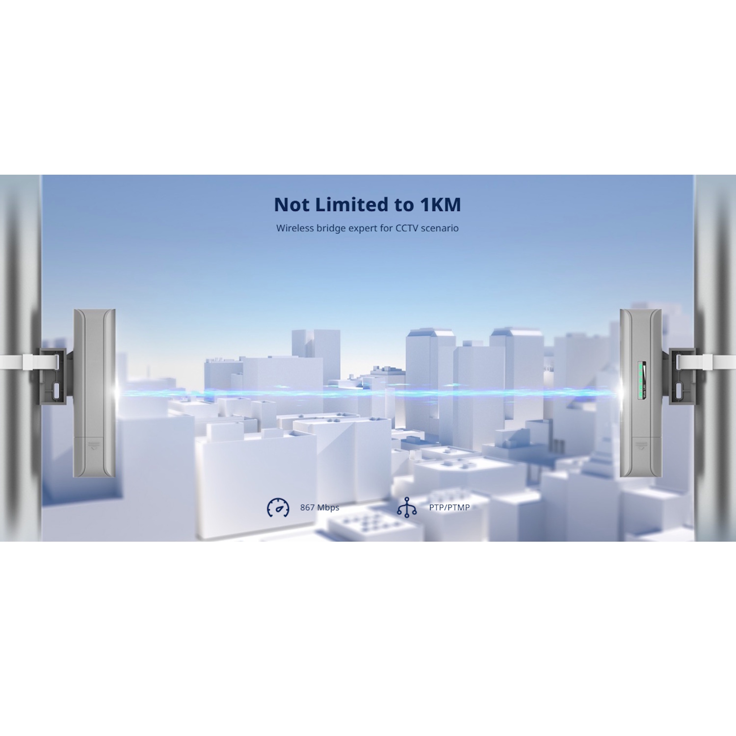 Ar IP54 novērtētu korpusu, uzlabotu signāla stabilitāti un pasīvo PoE atbalstu, tas ir ideāls stabilas datu vai video pārsūtīšanai ārējos apgabalos bez kabeļu izmaksām un pūlēm.