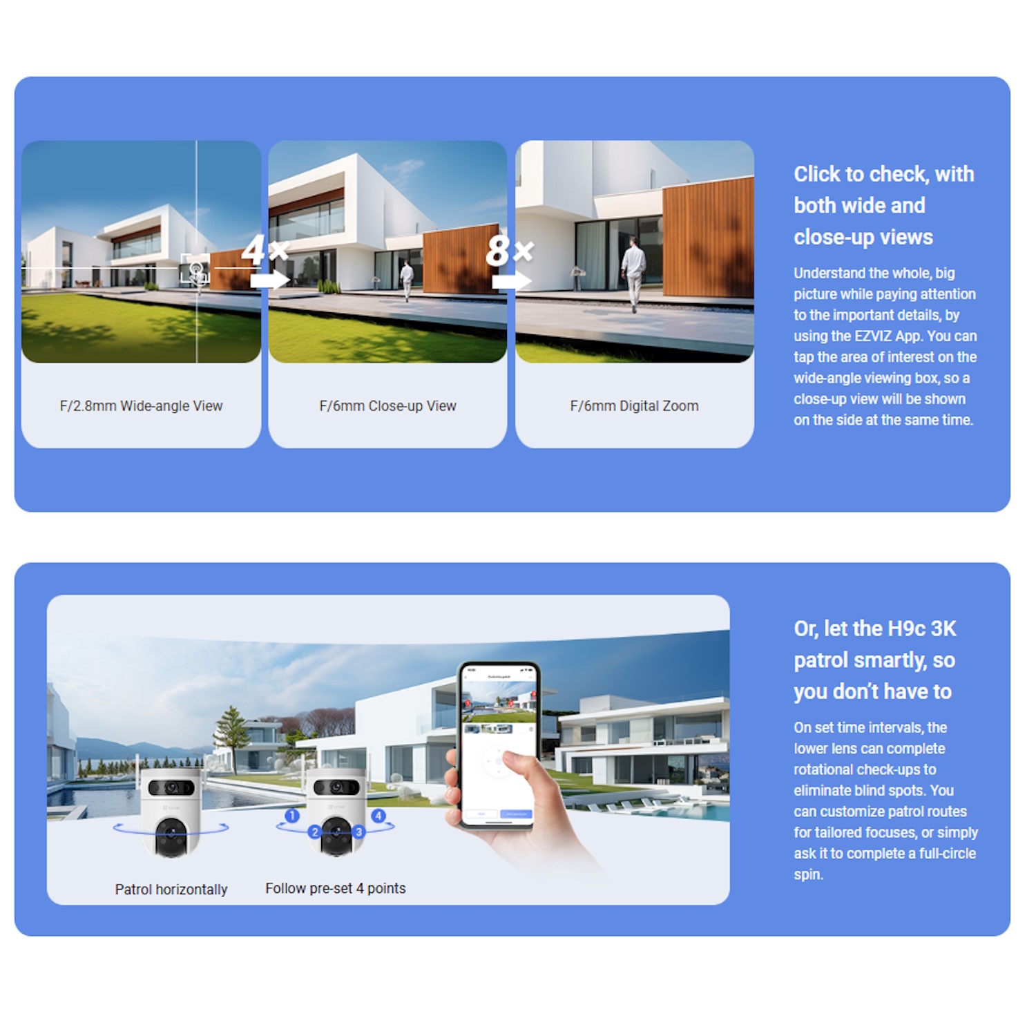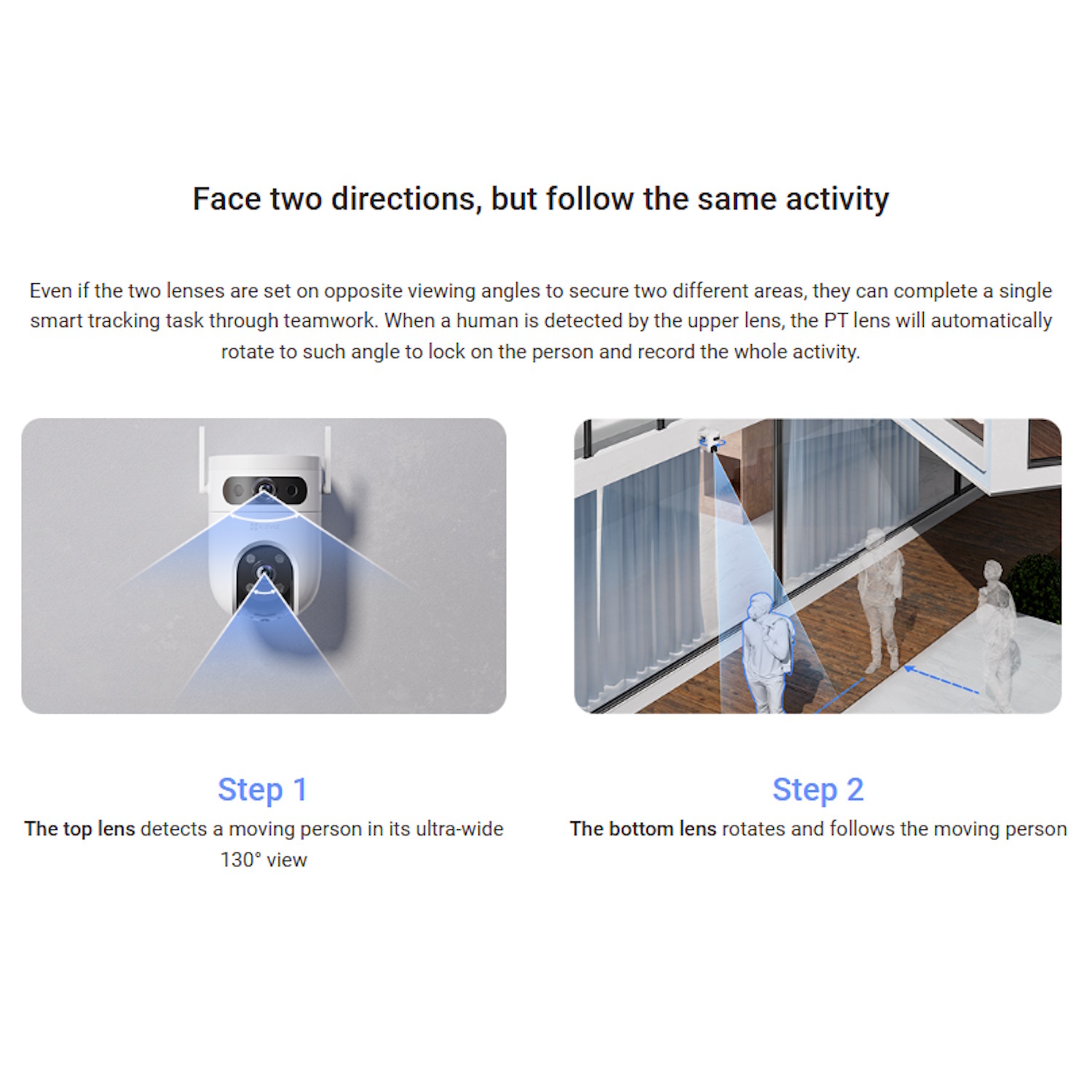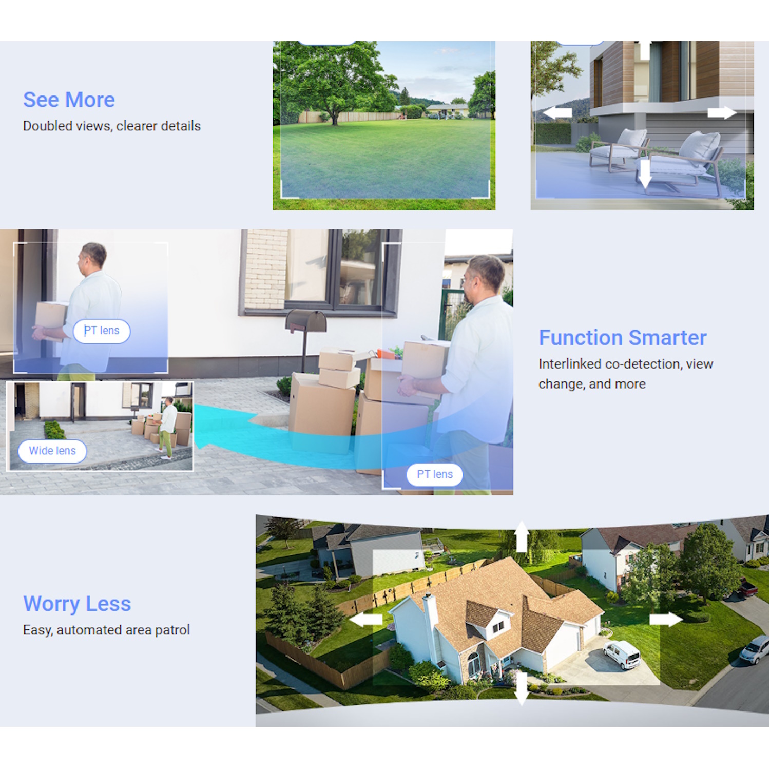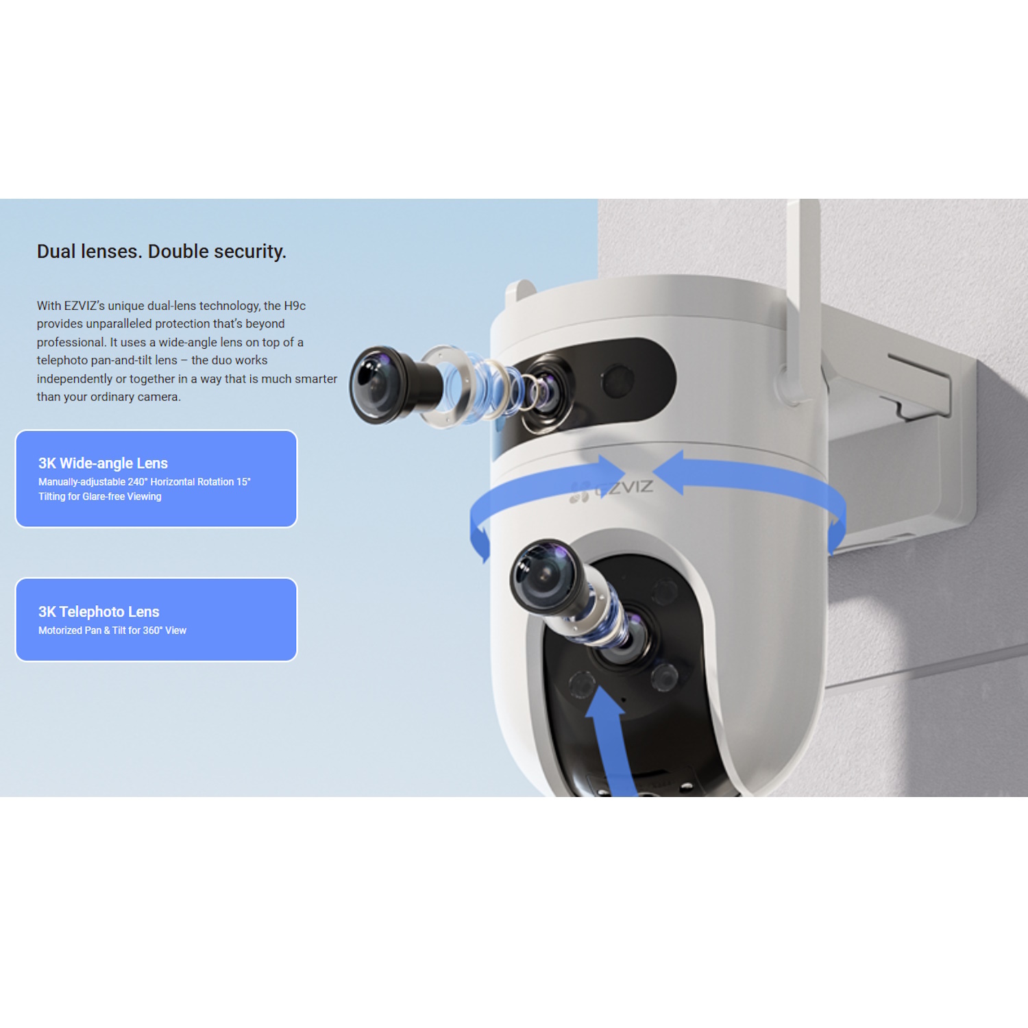 Inovatīvā divu objektīvu sistēma nodrošina gan plaša leņķa, gan detalizētus skatus, nodrošinot, ka neviena teritorija netiek atstāta bez uzraudzības.