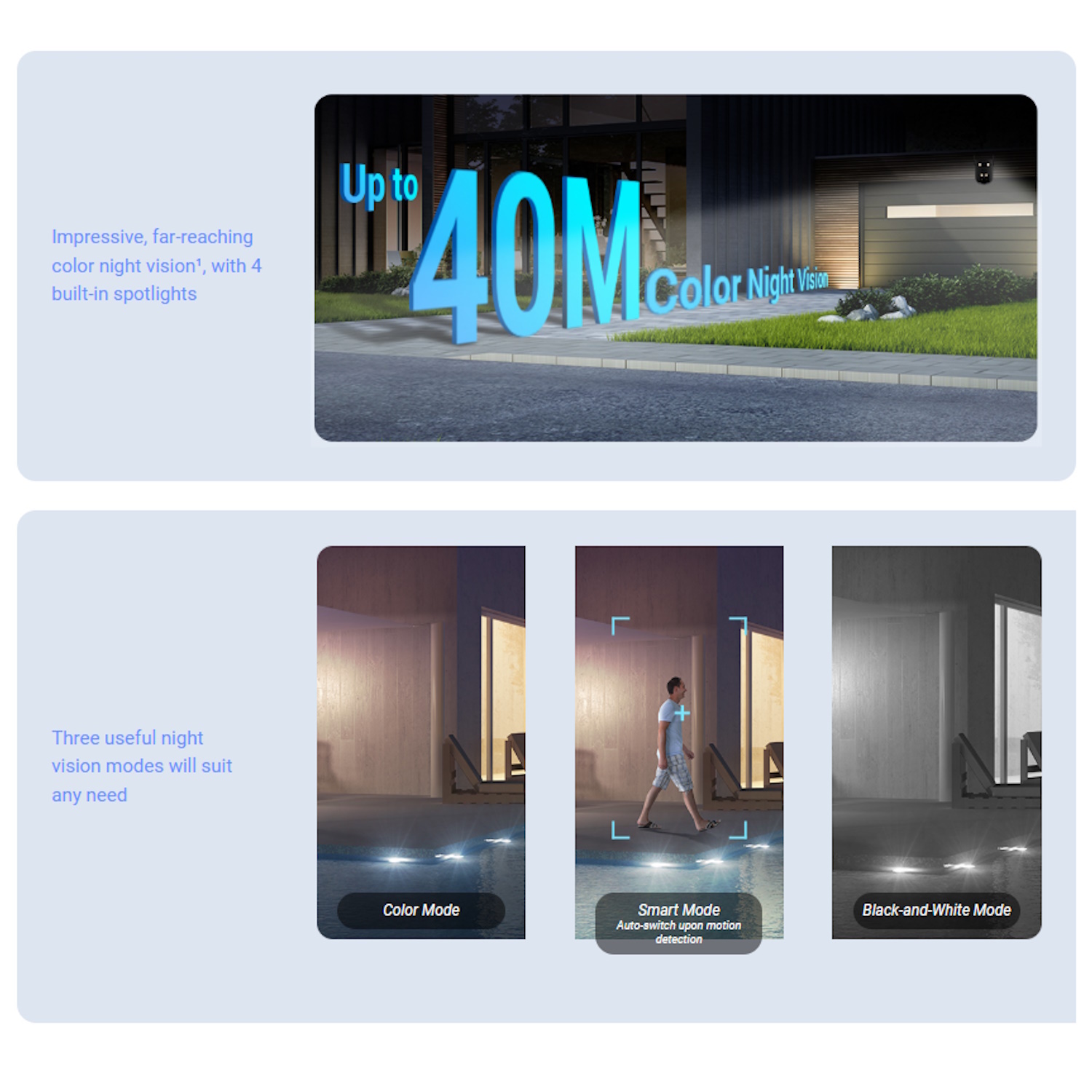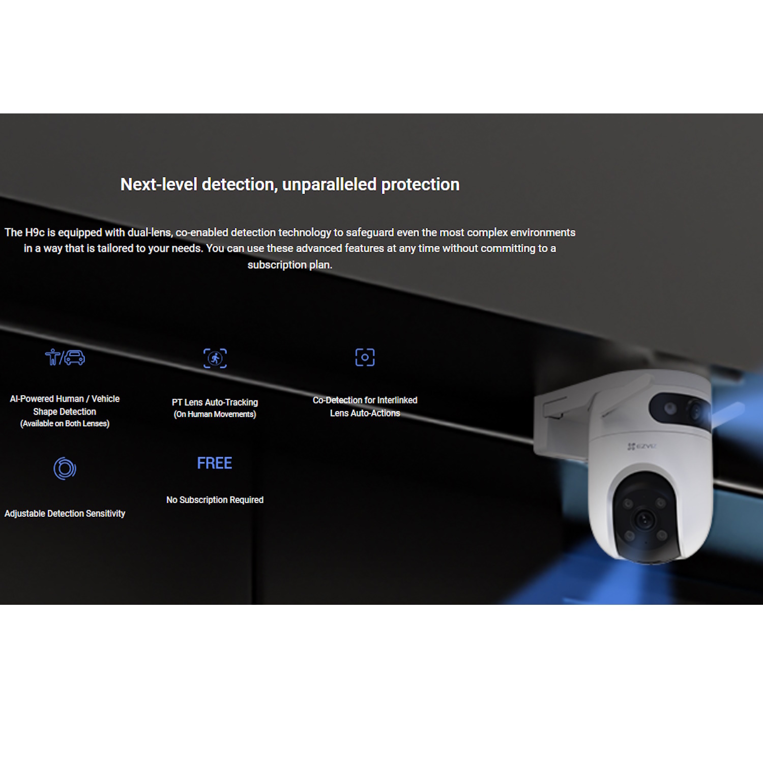Aprīkota ar iebūvētiem prožektoriem, H9C nodrošina pilnkrāsu naktīgu redzamību, ļaujot jums redzēt spilgtus detalizētus attēlus pat vāja apgaismojuma apstākļos.