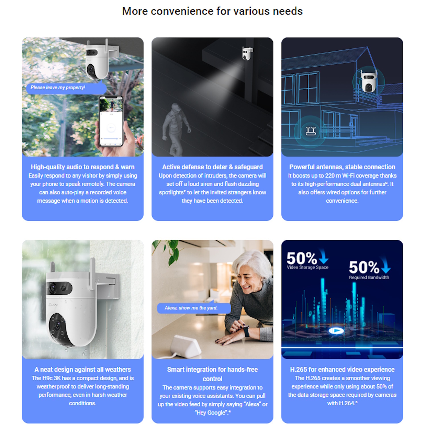 Saderīga ar Amazon Alexa un Google Assistant, H9C viegli integrējas jūsu viedās mājas ekosistēmā, ļaujot ērti kontrolēt ar balsi un automatizāciju.