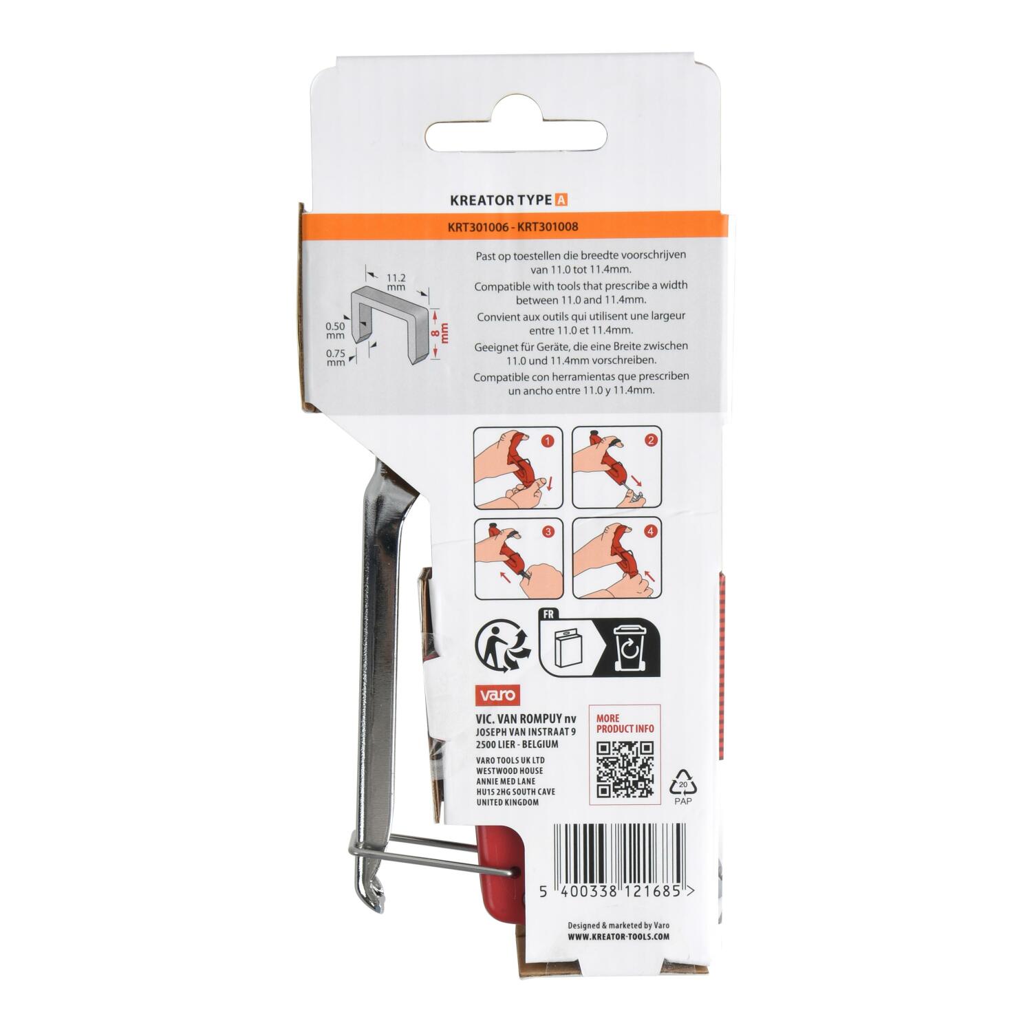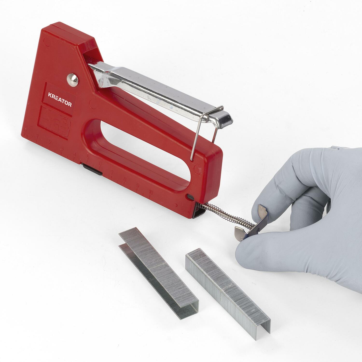 Skavotājs ir viegli uzlādējams un darbina skavas, kuru garums ir no 4 mm līdz 8 mm. Tā izturīgā metāla korpuss un ergonomiskā pret-slīdes rokturis padara to par izturīgu instrumentu, kas nodrošina lietotāja komfortu. Turklāt roktura slēdzis ļauj viegli un kompakt uzglabāt instrumentu.
