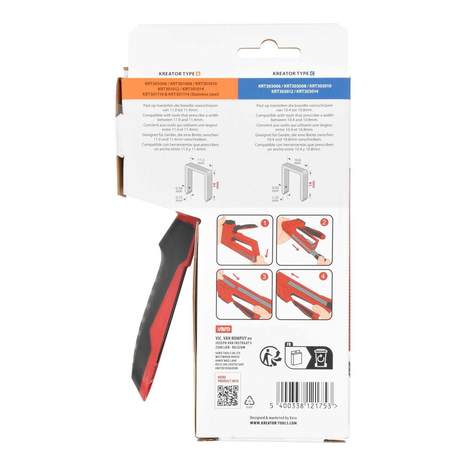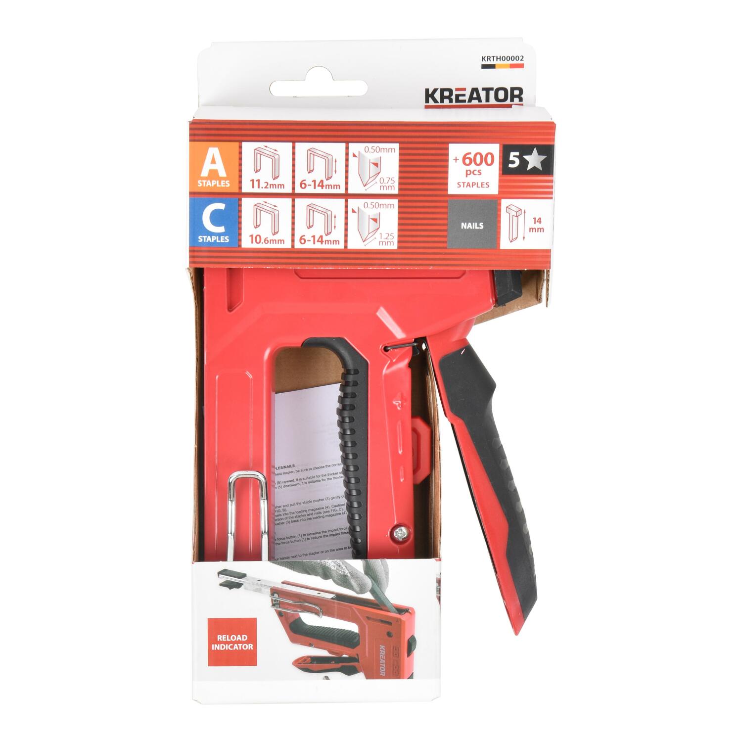 Rokas skavotājs KREATOR KRTH00002 būs jūsu jaunā "skavotājs" rīku lāde. Šis skavotājs ļaus jums pamatni no dažādiem materiāliem, piemēram, kartona, folijas, telts auduma, paklāja, koka un citiem.