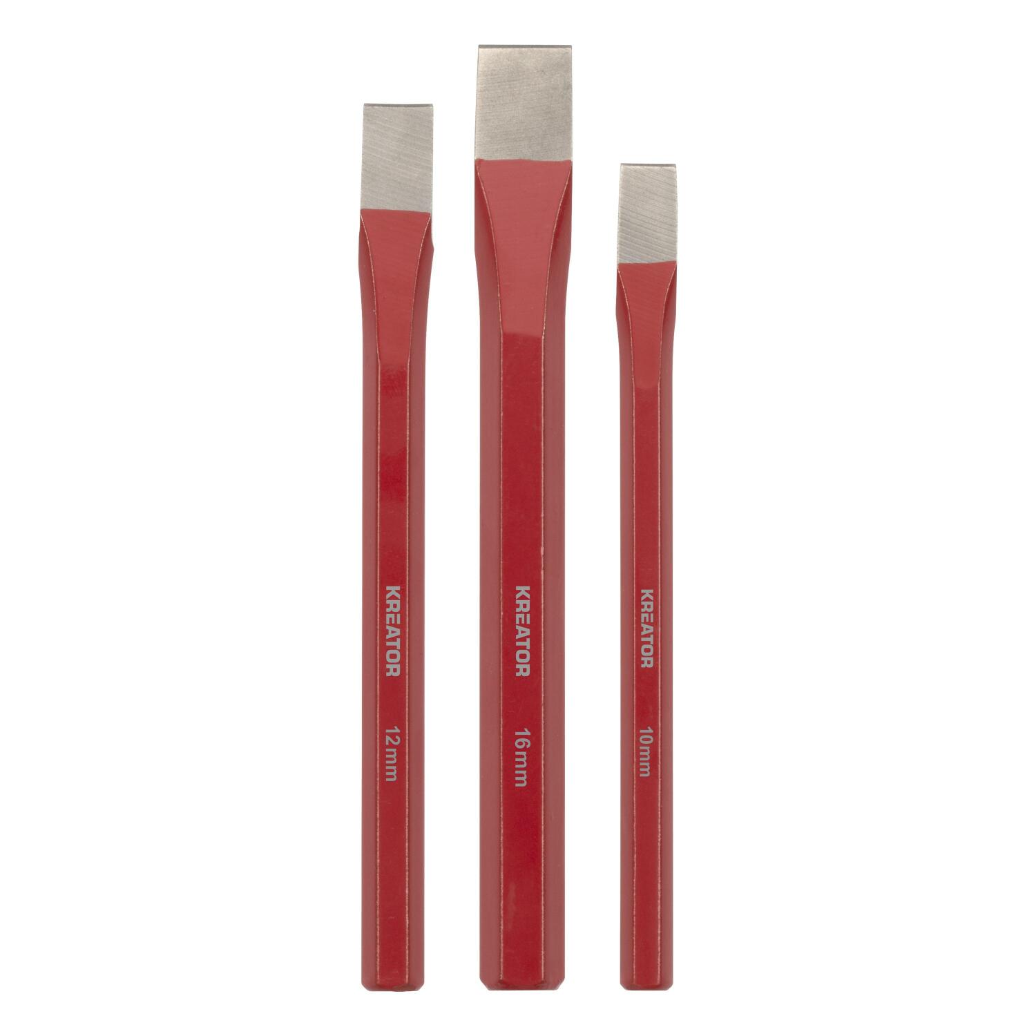 Aukstais kalts 10, 12, 16mm - 3 gab KREATOR KRTH23803 Galvas platums 10 mm / 12 mm / 16 mm Garums 140 mm / 150 mm / 160 mm