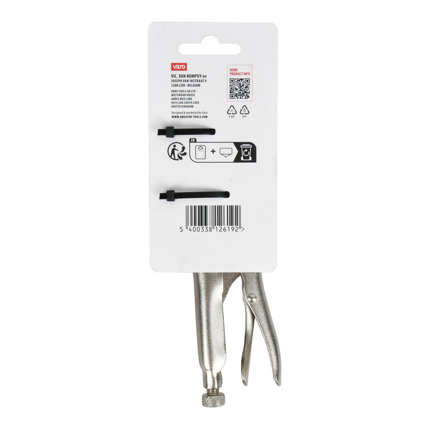 KREATOR KRTH61401 ir 175 mm garas slēdzams knaģis ar apaļu žokli, kas izgatavots no oglekļa tērauda un pilnībā niķelēts. Šie knaģi ļauj ērti un droši turēt caurules un citus priekšmetus. Apakšpusē esošais skrūve kalpo precizēšanai un stiprināšanas spēka regulēšanai.