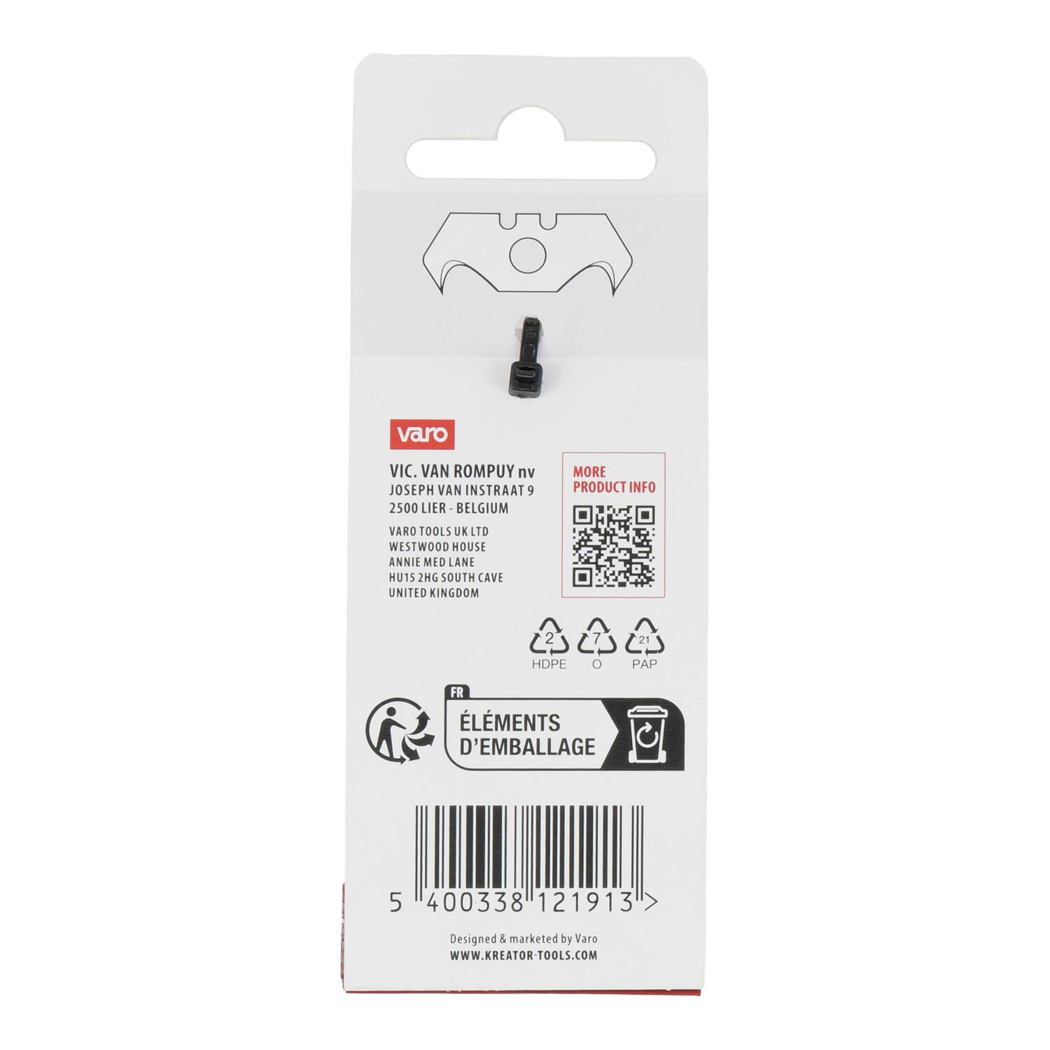 Šis ir 10 gabalu komplekts rezervējo asmeņu, kas der smagajam, cinka sakausējuma kastītes nažam KRTH00202. Šie āķveida asmeņi ir viegli nomaināmi un ir ideāli piemēroti biezāku materiālu, piemēram, paklāju, vinila un jumta materiālu griešanai.