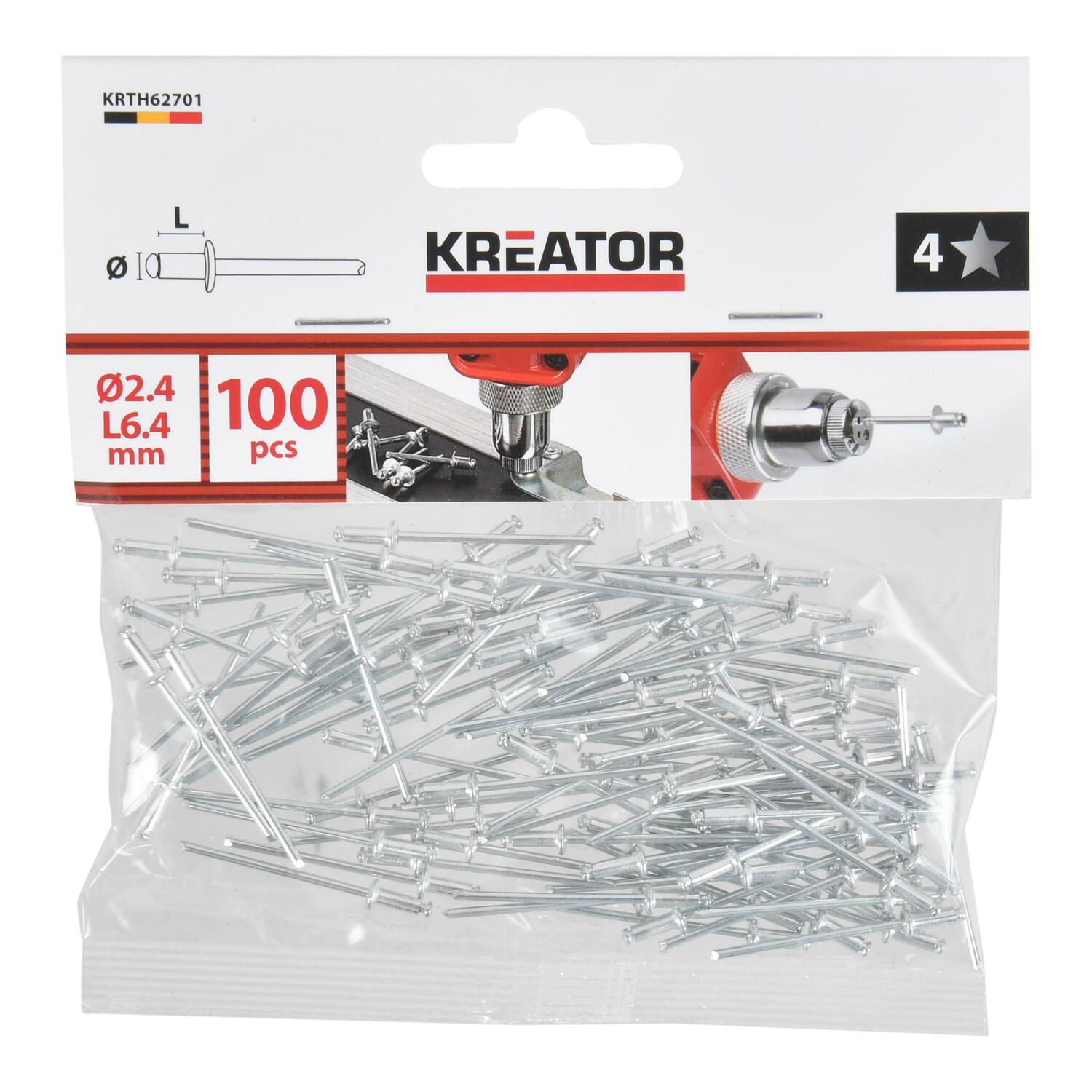 Šie 100 # kniedes ir 2.4 mm diametrā. Izmantojiet tos, lai savienotu metāla, alumīnija vai plastmasas priekšmetus ar biezumu līdz 3 mm, bez skrūvēm, ātri un viegli, izmantojot kniedēšanas knaibles.