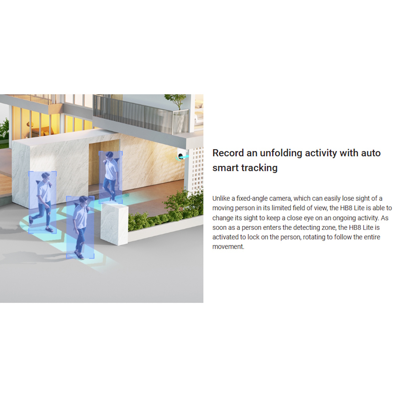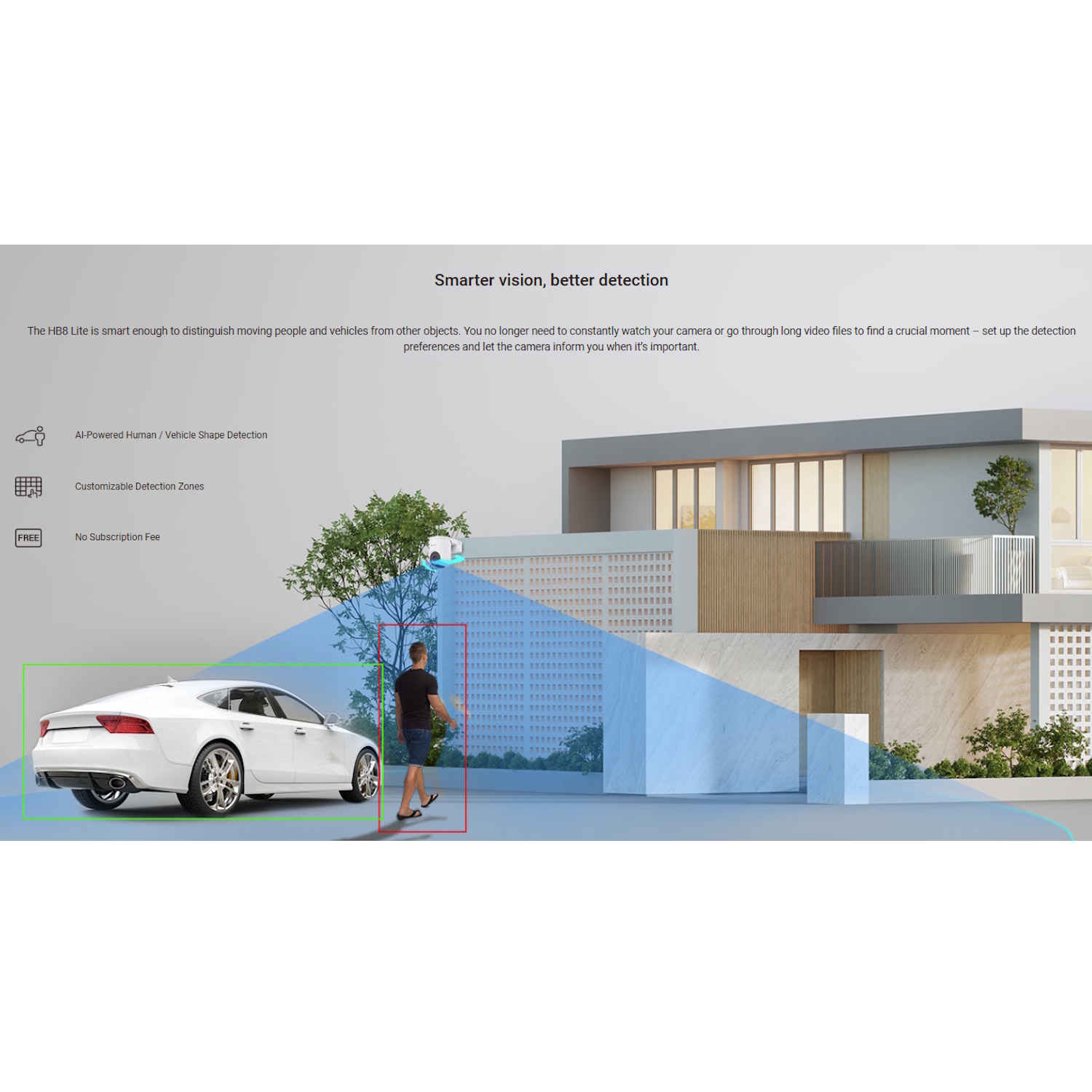 Izbaudi bezvadu drošību ar Ezviz HB8 Lite 2K⁺ — jaudīgu ārējo viedo kameru ar akumulatoru, kas piedāvā 360° pārklājumu, 2K⁺ izšķirtspēju un krāsainu nakts redzi. Tā nodrošina cilvēku un transportlīdzekļu atpazīšanu, divvirzienu skaņu un izturīgu IP65 korpusu jebkuros laikapstākļos.
