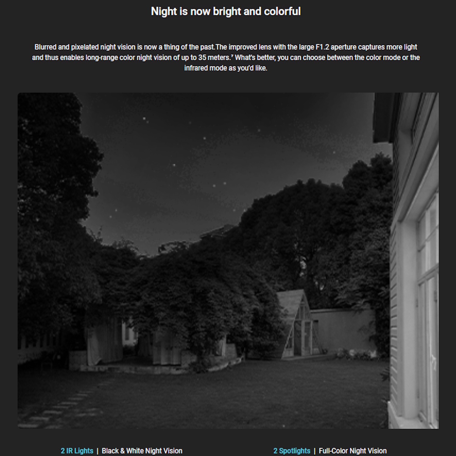 Nakts redzamība līdz 35 metriem, pateicoties uzlabotajai Smart IR tehnoloģijai.
