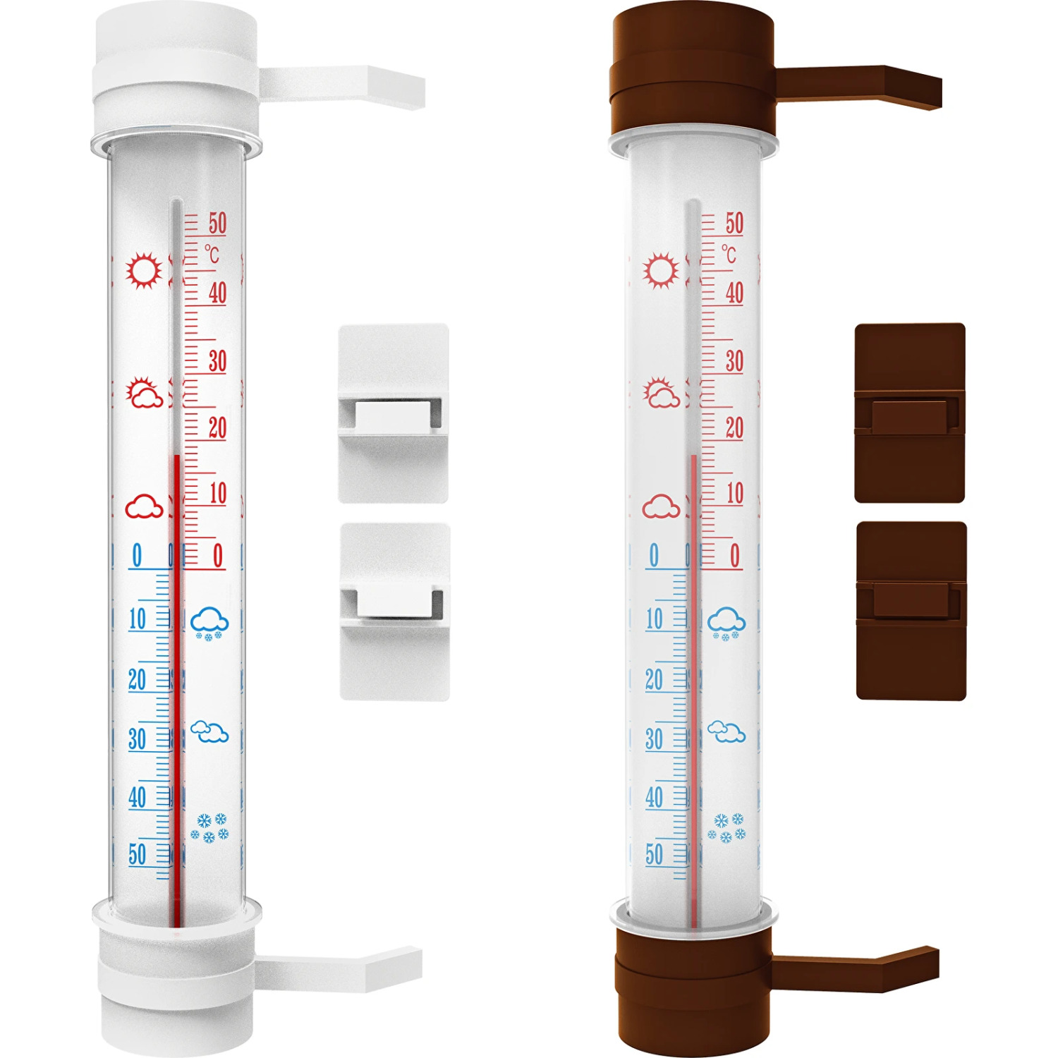 Termometra izmērs nodrošina optimālu vērtību lasāmību, vienlaikus saglabājot elegantu ierīces proporciju. Tagad temperatūras izlasīšana ārpusē būs ātra un patiešām skaidra bauda! Termometrs sastāv no stikla caurules un skalas, kas drukāta uz plastmasas pamatnes. Tam ir termometriskais šķidrums – toluēna (šķīdinātāja) un krāsvielu maisījums.
