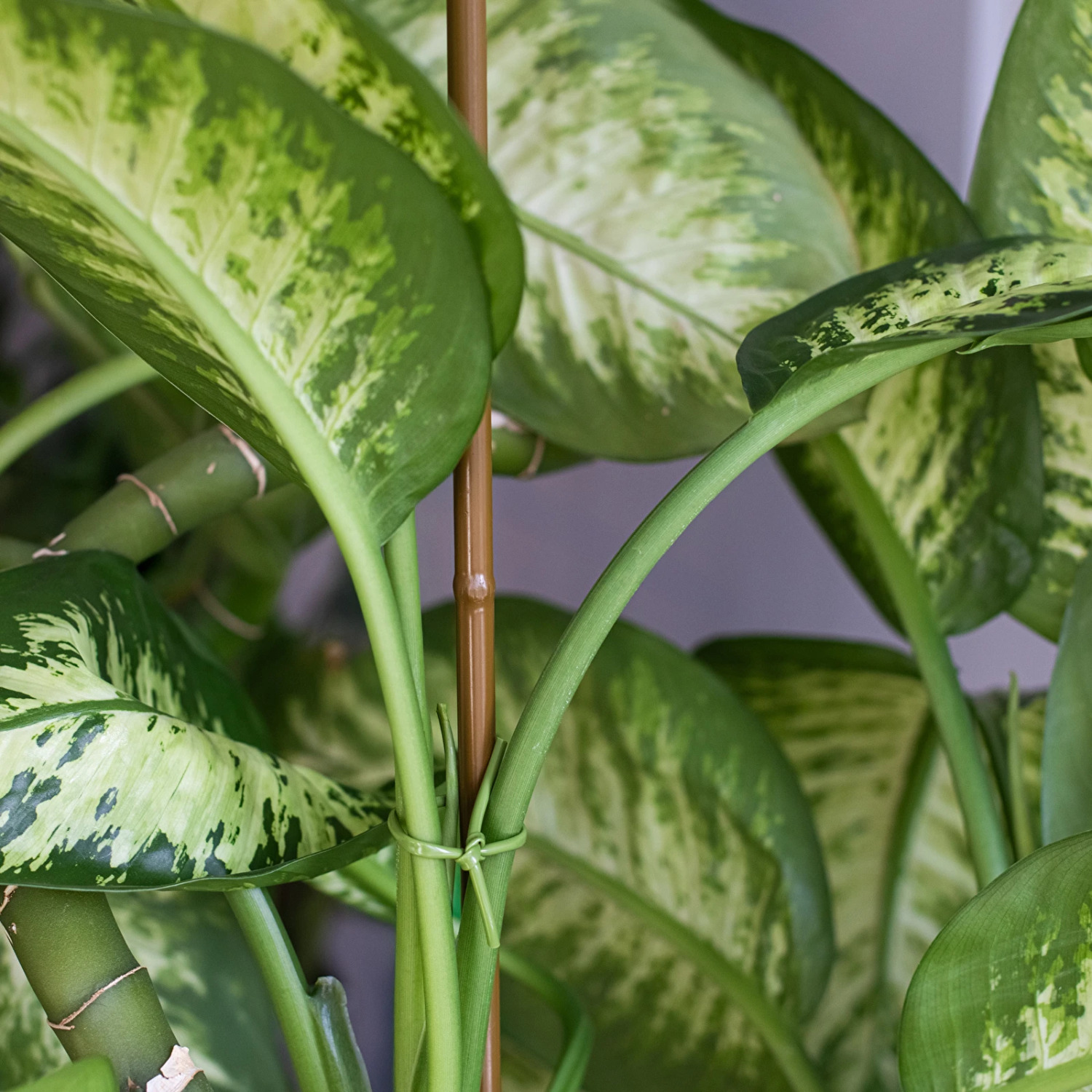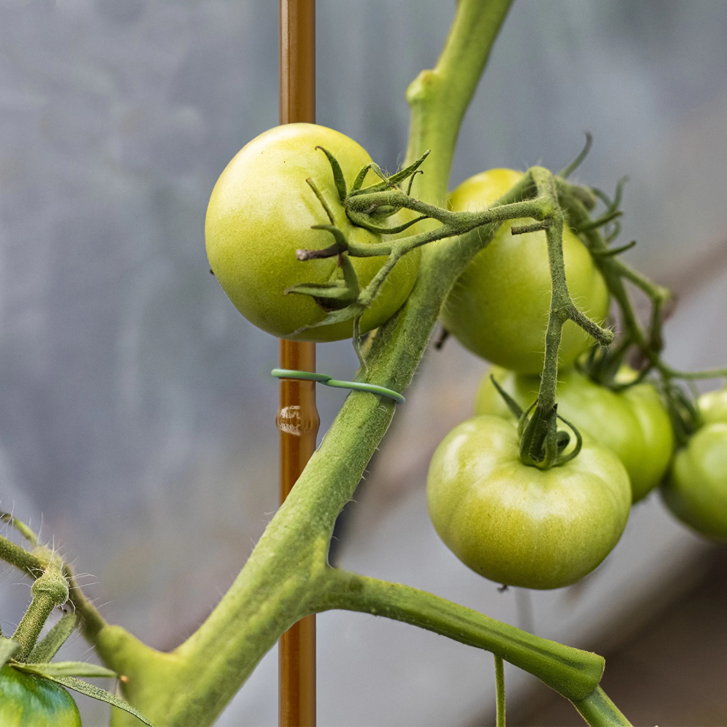 Izgatavots no tērauda ar plastmasas pārklājumu, formā, kas atgādina izturīgus bambusa stublājus, šie mietiņi piedāvā gan funkcionalitāti, gan stilīgu dabisku izskatu. 🌱