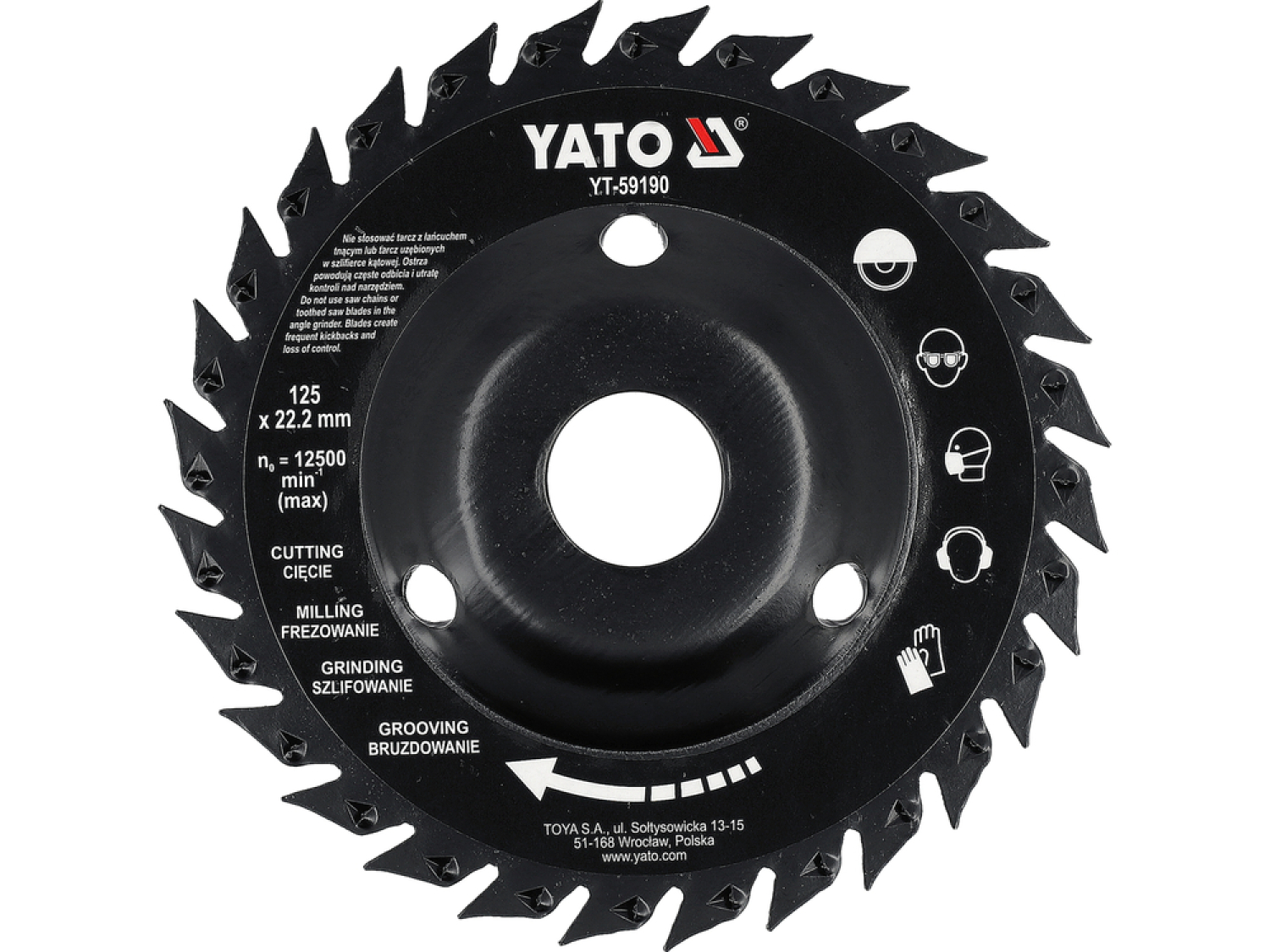 Zāģa raspis konusveida YATO YT-59190 125 mm, 12500 min⁻¹, 22.2 mm, oglekļa tērauds, rūdīts, lakots