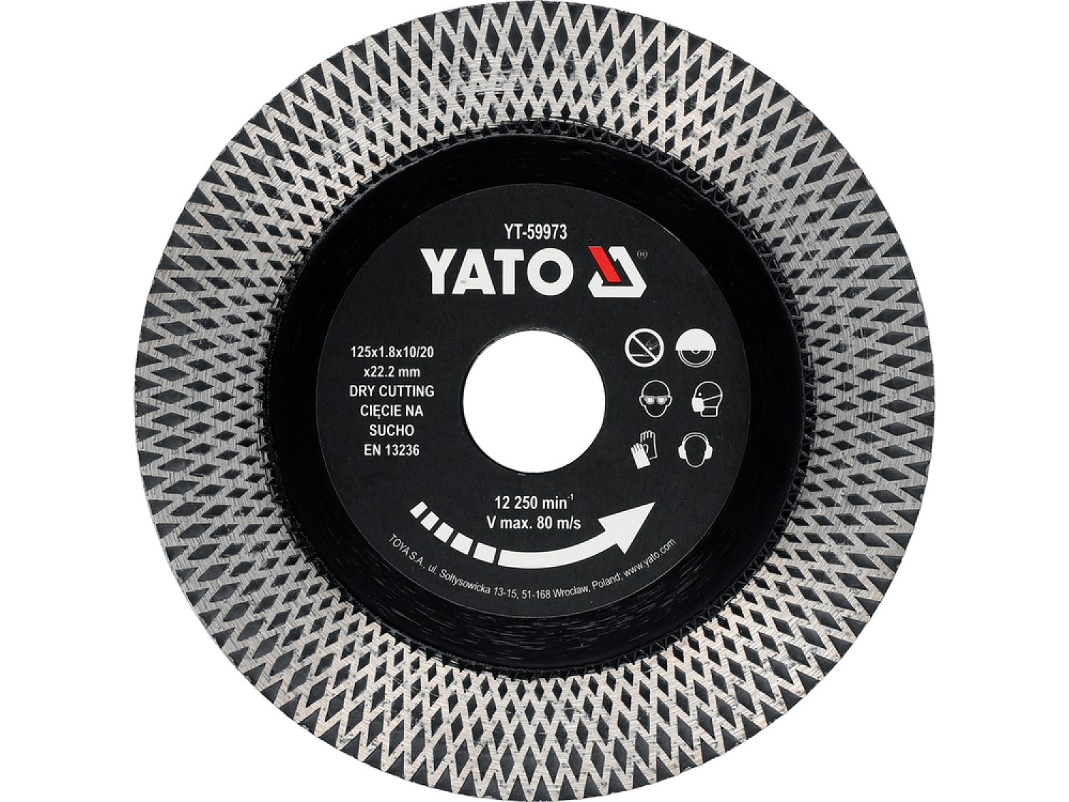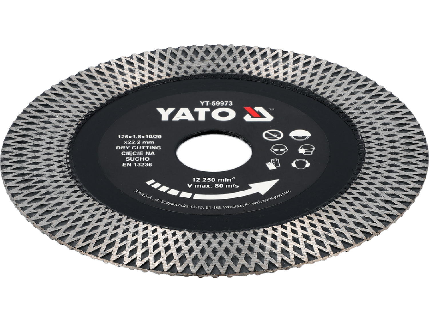 Dimanta disks YATO YT-59973 ir paredzēts precīzai sausai griešanai keramikas un akmens materiālos.