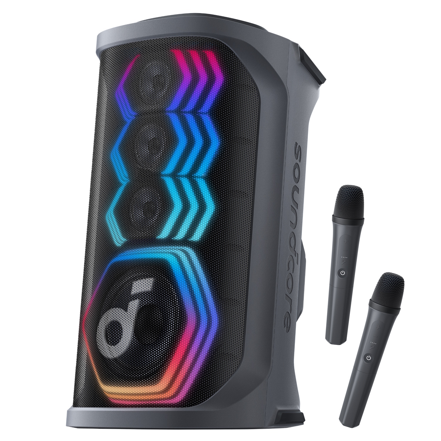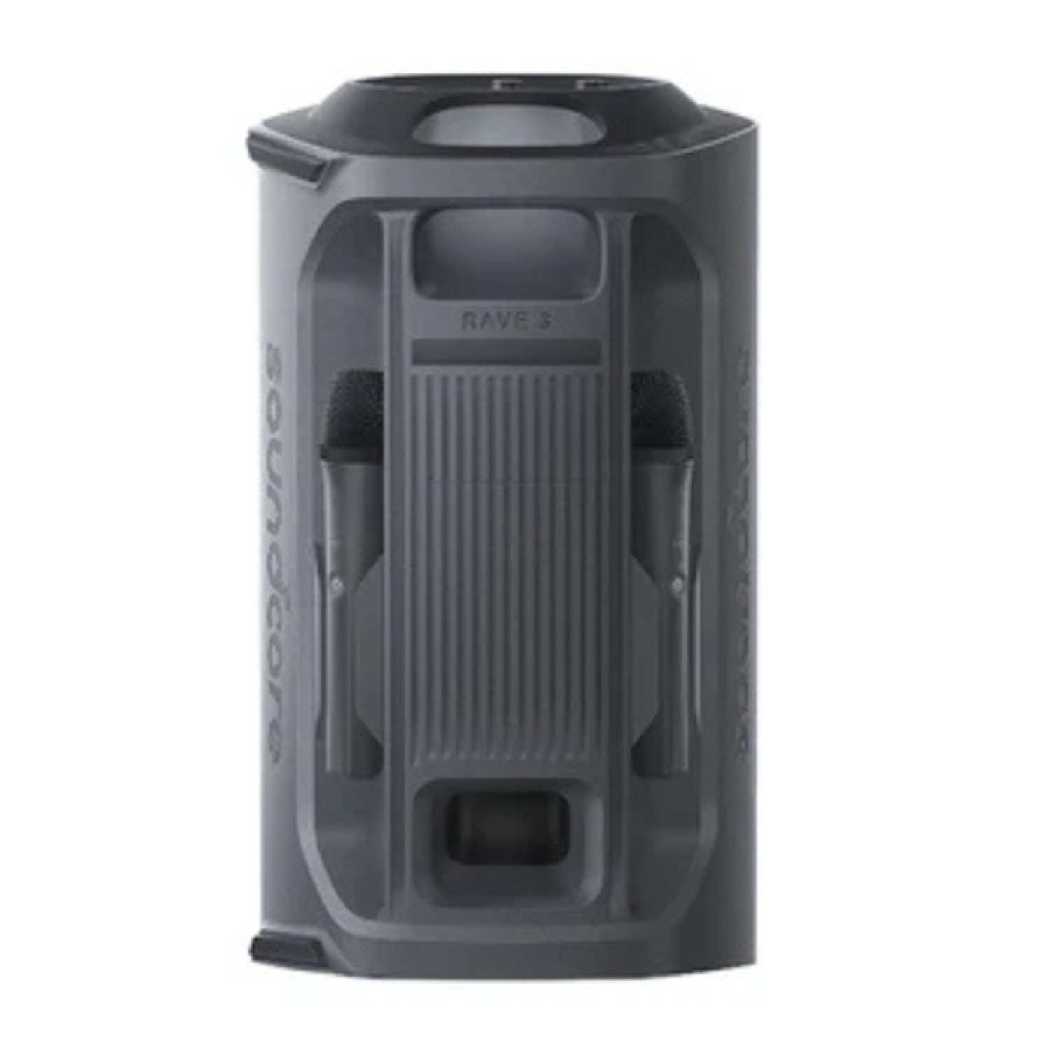 Soundcore Rave 3S izceļas ar to, ka vienā ierīcē apvieno jaudīgu skaļruni, karaoke staciju, LED gaismu sistēmu un portatīvu PA risinājumu.