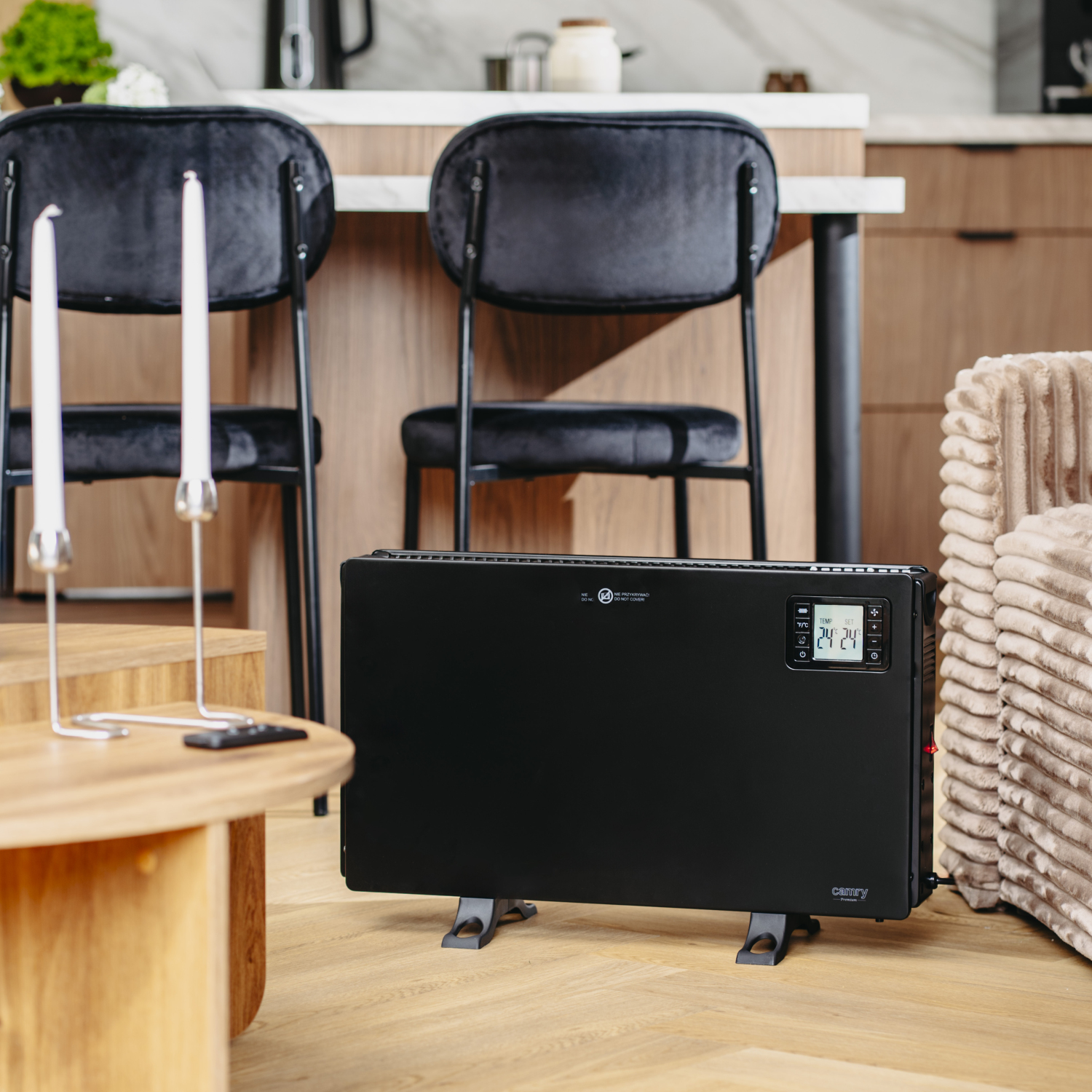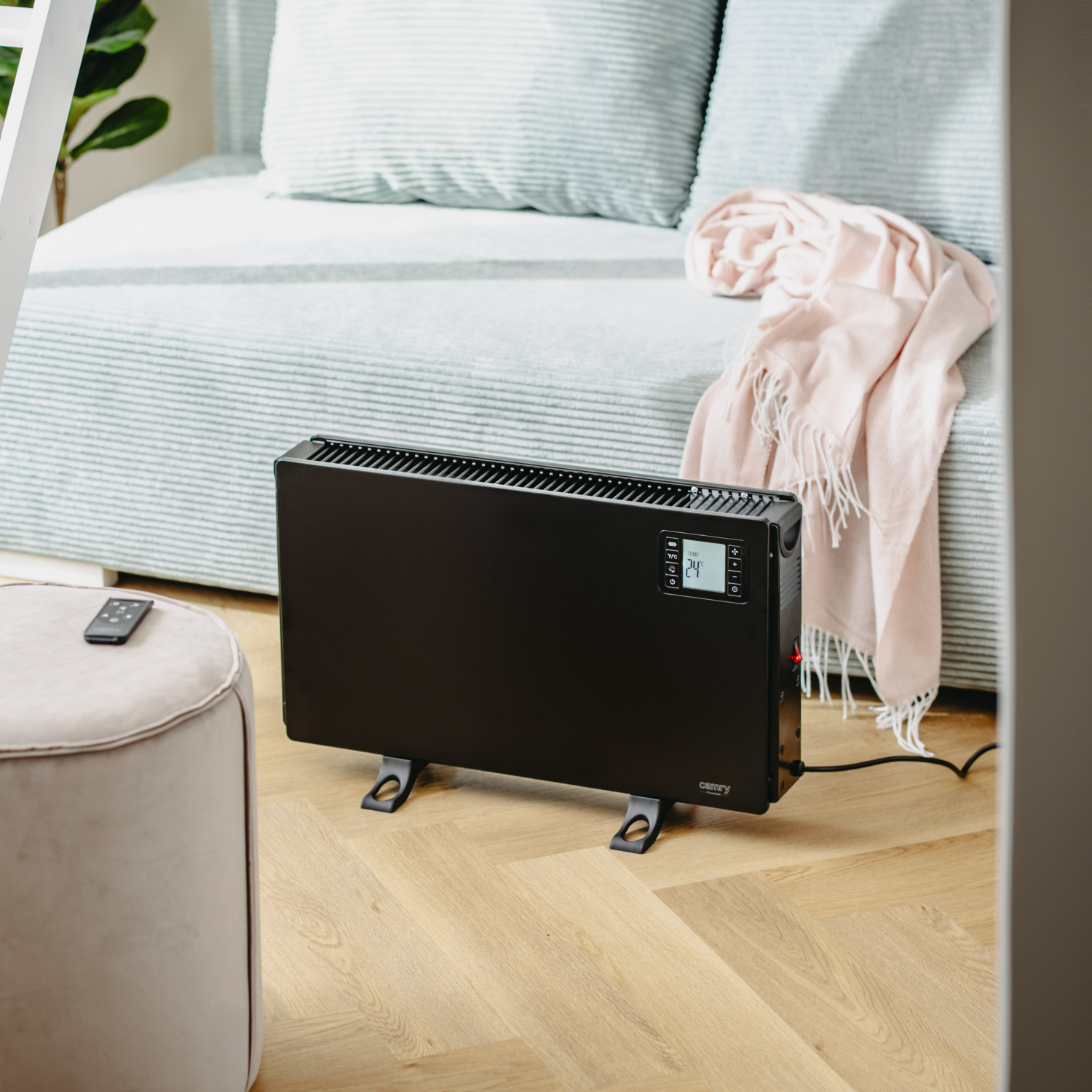 Camry CR7739 ir kompakts un jaudīgs konvekcijas ventilatora sildītājs ar 2000 W kopējo jaudu, kas paredzēts efektīvai telpu apsildei līdz aptuveni 30 m². Tas apvieno konvekcijas apsildi ar piespiedu gaisa cirkulāciju, nodrošinot ātrāku un vienmērīgāku siltuma izkliedi. Tālvadības pults ļauj ērti pārvaldīt gaisa temperatūru, jaudas līmeņus un darbības režīmus bez piecelšanās. Pateicoties drošības risinājumiem, regulējamam termostatam un klusai darbībai, šis modelis ir īpaši piemērots guļamistabām, viesistabām, mājas birojiem un sezonāli izmantojamām telpām. Melnā versija iederas modernā un kontrastainā interjerā.