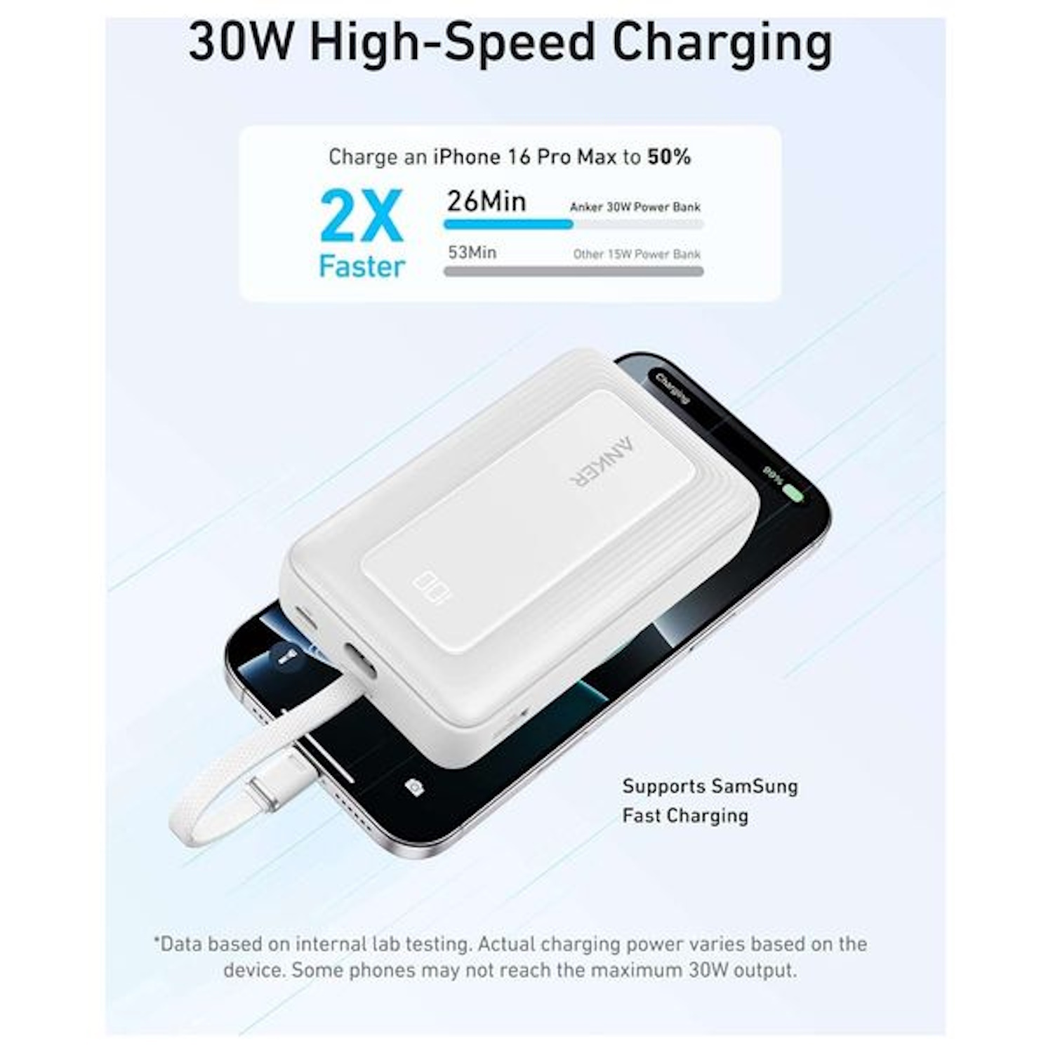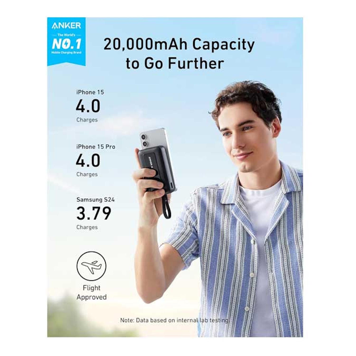 Anker A1689H21 nodrošina īpaši lielu 20000 mAh jaudu, kas sniedz vairākas uzlādes pat energoietilpīgām ierīcēm.