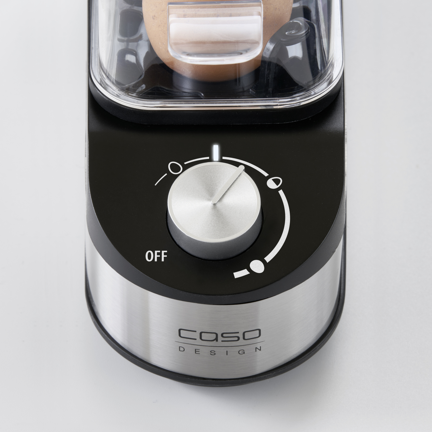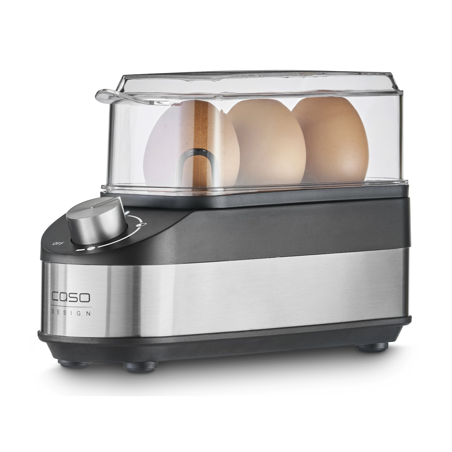 Caso E3 ir super kompakta un moderna olu vārāmā ierīce ar karstā gaisa tehnoloģiju, kas ļauj pagatavot olas bez ūdens mērīšanas, vienkārši iestatot vēlamo konsistenci — mīkstas, vidējas vai cieti vārītas. 210 W jauda nodrošina ātru uzkarsēšanu, savukārt nerūsējošā tērauda un melnās krāsas korpuss piešķir ierīcei augstvērtīgu un minimālistisku izskatu. Lieliski piemērota ātrām brokastīm, birojam, studentu virtuvēm un nelielām mājsaimniecībām.