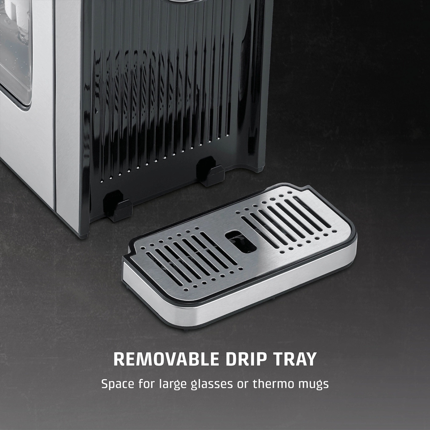 Augsta trauku niša — piemērota lielām krūzēm, termoskrūzēm un „to-go” traukiem.