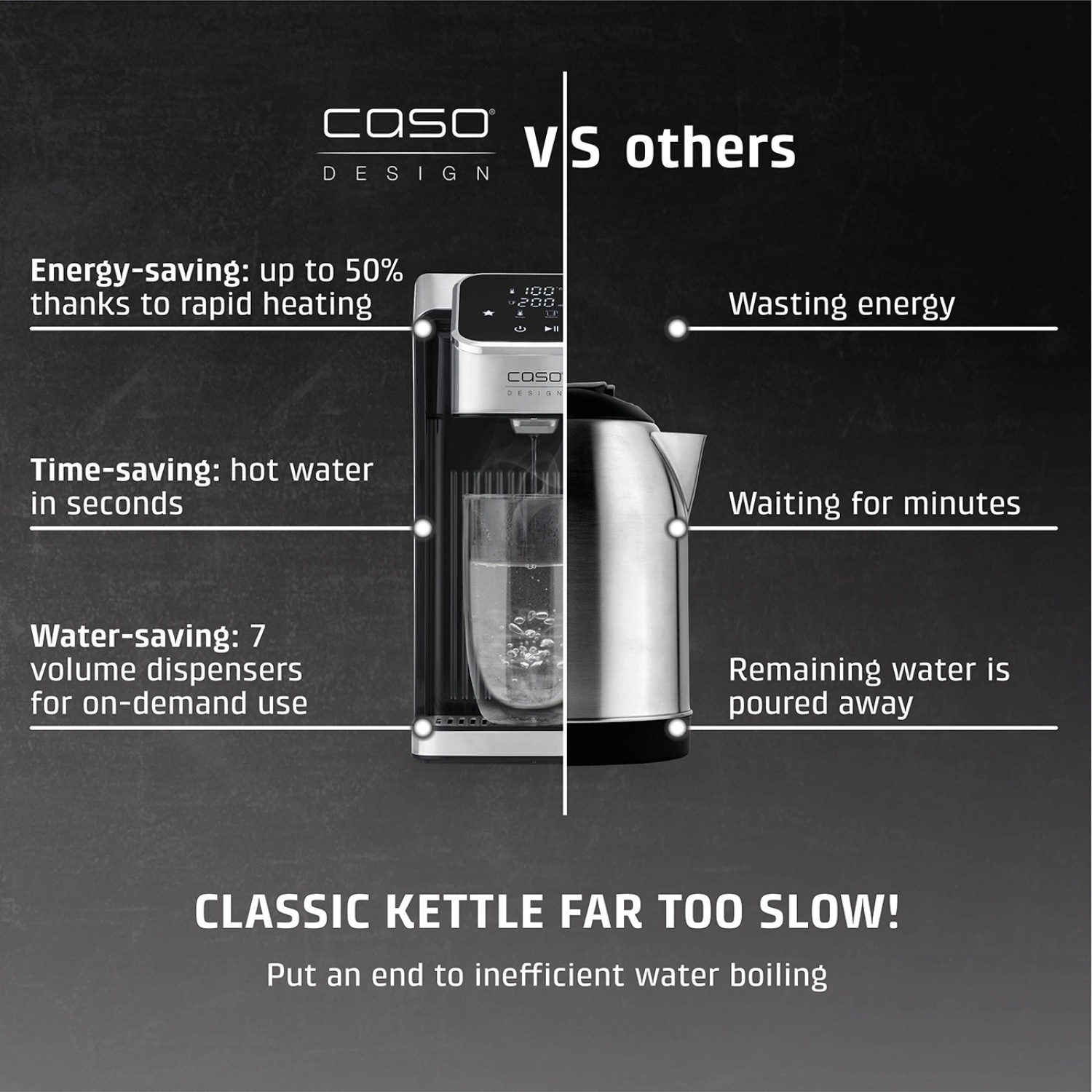 Karsts ūdens 7 sekundēs — būtiski ātrāk par elektrisko tējkannu, ideāli rīta steigai vai darbam birojā.