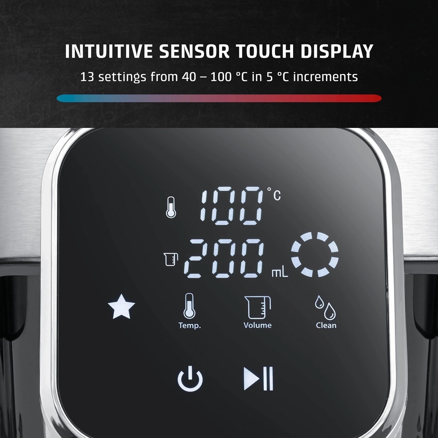 Regulējama temperatūra 40–100 °C ar 5 °C soli — ideāli dažādām tējām, kafijai, bērnu ēdienam un ikdienas vajadzībām.