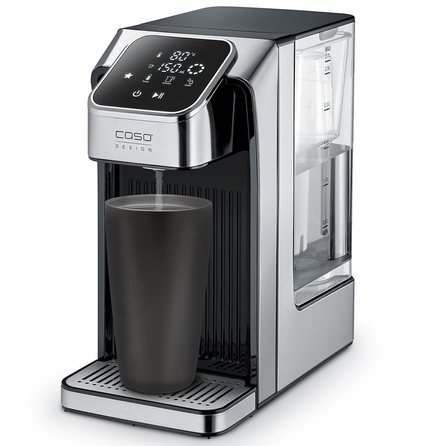 Caso HW770 Advanced ir moderns, augstas veiktspējas tūlītējas uzsildīšanas ūdens dozators ar 2,7 L noņemamu tvertni, precīzi regulējamu temperatūru no 40 °C līdz 100 °C un jaudīgu 2200–2600 W sildīšanas tehnoloģiju. Tas nodrošina karstu ūdeni tikai 7 sekundēs, ievērojami ietaupot laiku, enerģiju un ūdeni, jo tiek uzsildīts tikai nepieciešamais daudzums. Ergonomisks Sensor-Touch vadības panelis, dozēšanas tilpuma izvēle, „Memory” funkcija un augstas kvalitātes nerūsējošā tērauda korpuss padara ierīci par ērtu, izturīgu un efektīvu risinājumu modernai virtuvei vai birojam.