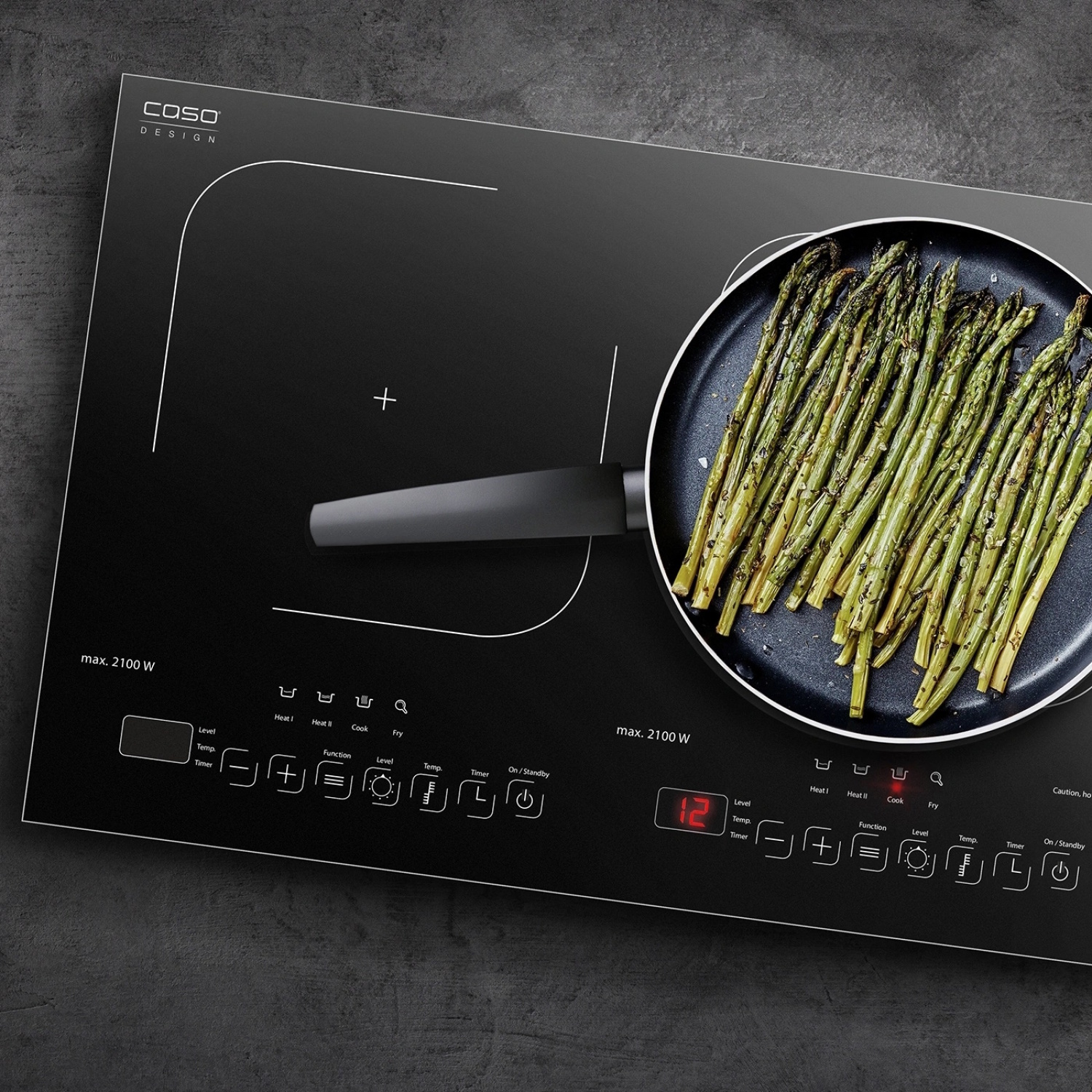 Caso ProGourmet 3500 ir jaudīga, moderna un mobilai lietošanai piemērota divu zonu indukcijas plīts virsma ar kopējo jaudu 3500 W. Tā piedāvā ļoti precīzu temperatūras kontroli, ātru uzsildīšanu un daudzpusību gan ikdienas ēdiena gatavošanai mājās, gan pagaidu vai ceļojumu lietojumos. Stikla-keramikas virsma, Sensor-Touch vadība, 12 jaudas līmeņi un 180 minūšu taimeris nodrošina ērtu, ātru un stabilu gatavošanas pieredzi. Eleganta, izturīga konstrukcija un automātiskas drošības funkcijas padara šo modeli par profesionāla līmeņa risinājumu kompaktā formā.